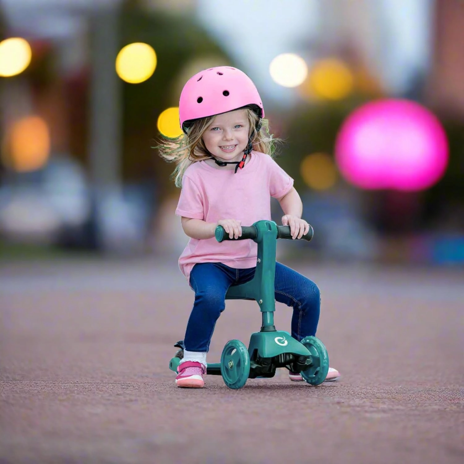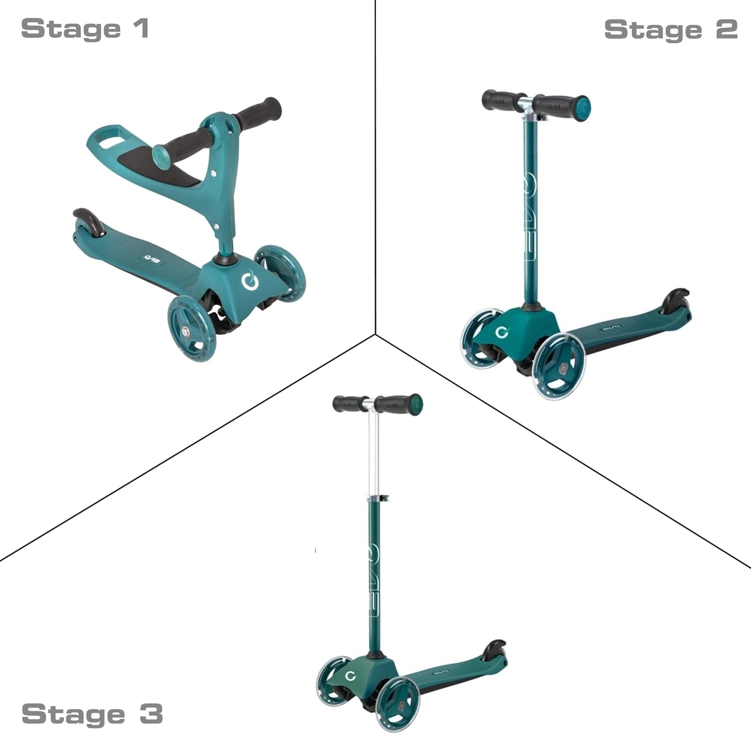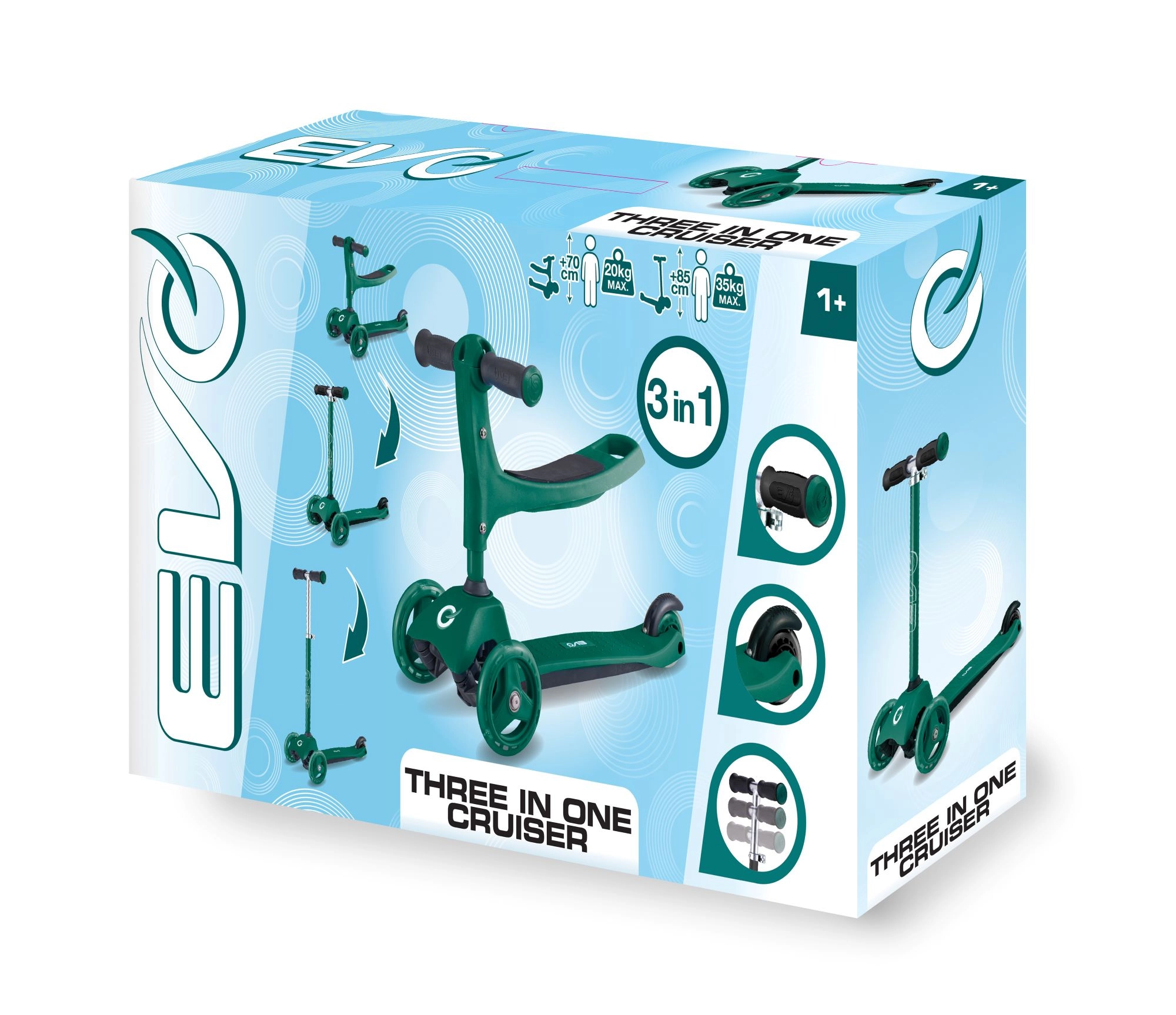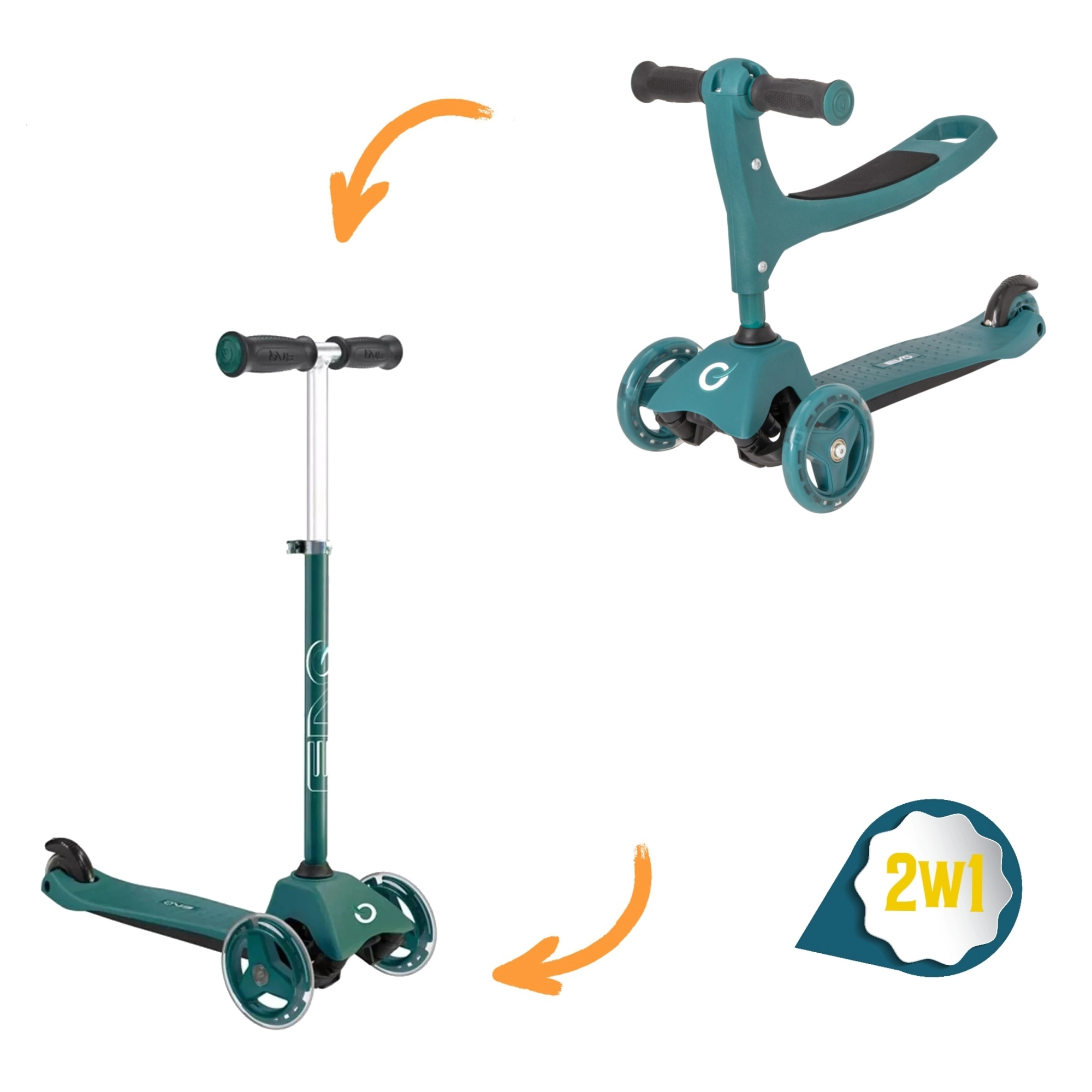 Suteikite vaikams stabilią ir linksmą kelionę su EVO 2 viename paspirtuku – jis sujungia važiuoklę su sėdyne ir paspirtuką viename. Dėl trijų ratų, plataus pakojo ir reguliuojamo vairo aukščio jis lavina pusiausvyrą ir koordinaciją jau nuo 1 metų. Dvigubi priekiniai ratai, tylūs ABEC-5 guoliai ir galinis sparnas su kojiniu stabdžiu užtikrina saugią ir tolygią kelionę.