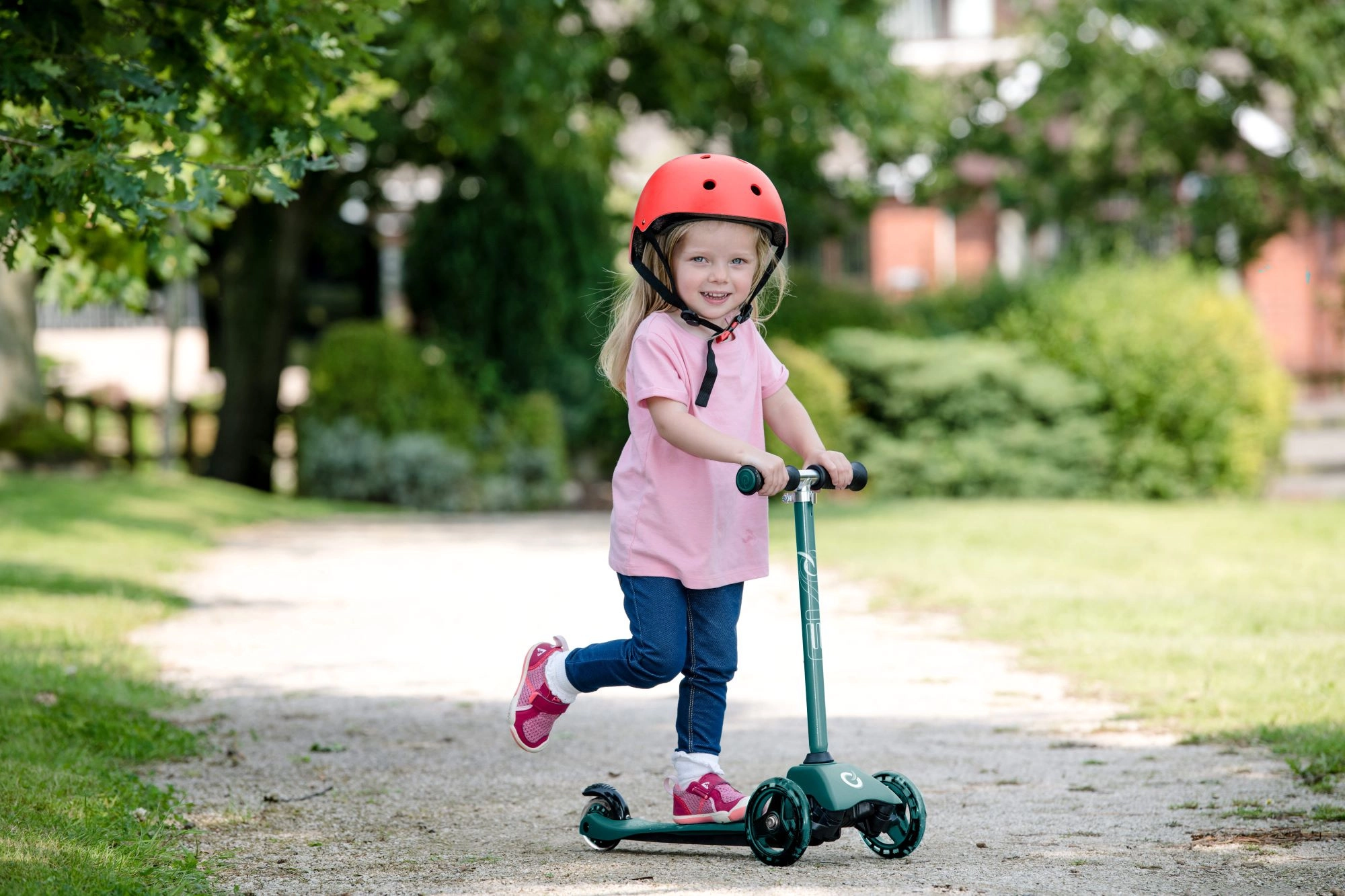 Du didesni priekiniai ratai laiko kryptį ir didina pasitikėjimą atsistumti. Galinis sparnas veikia kaip patikimas kojinis stabdis saugiam sustojimui.