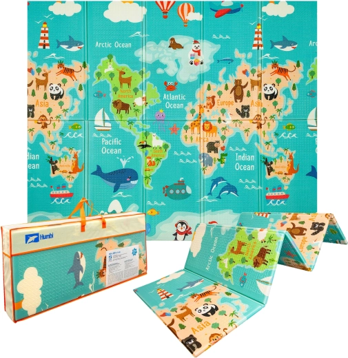 Atraskite erdvų ir minkštą HUMBI žaidimų kilimėlį iš aukštos kokybės XPE putų, kurio matmenys 200 × 180 × 1 cm. Jis yra dvipusis – viena pusė su spalvotu pasaulio žemėlapiu, kita – su miesto gatvelėmis – ir siūlo saugų, vandeniui atsparų ir lengvai valomą paviršių kūdikiams ir vaikams nuo gimimo. Dėl sulankstomos konstrukcijos ir praktinio krepšio komplekte puikiai tinka vaikų kambariui, svetainei ir sodui. Be kenksmingų medžiagų, CE, EN71 ir REACH sertifikatai užtikrina didžiausią tėvų ramybę.