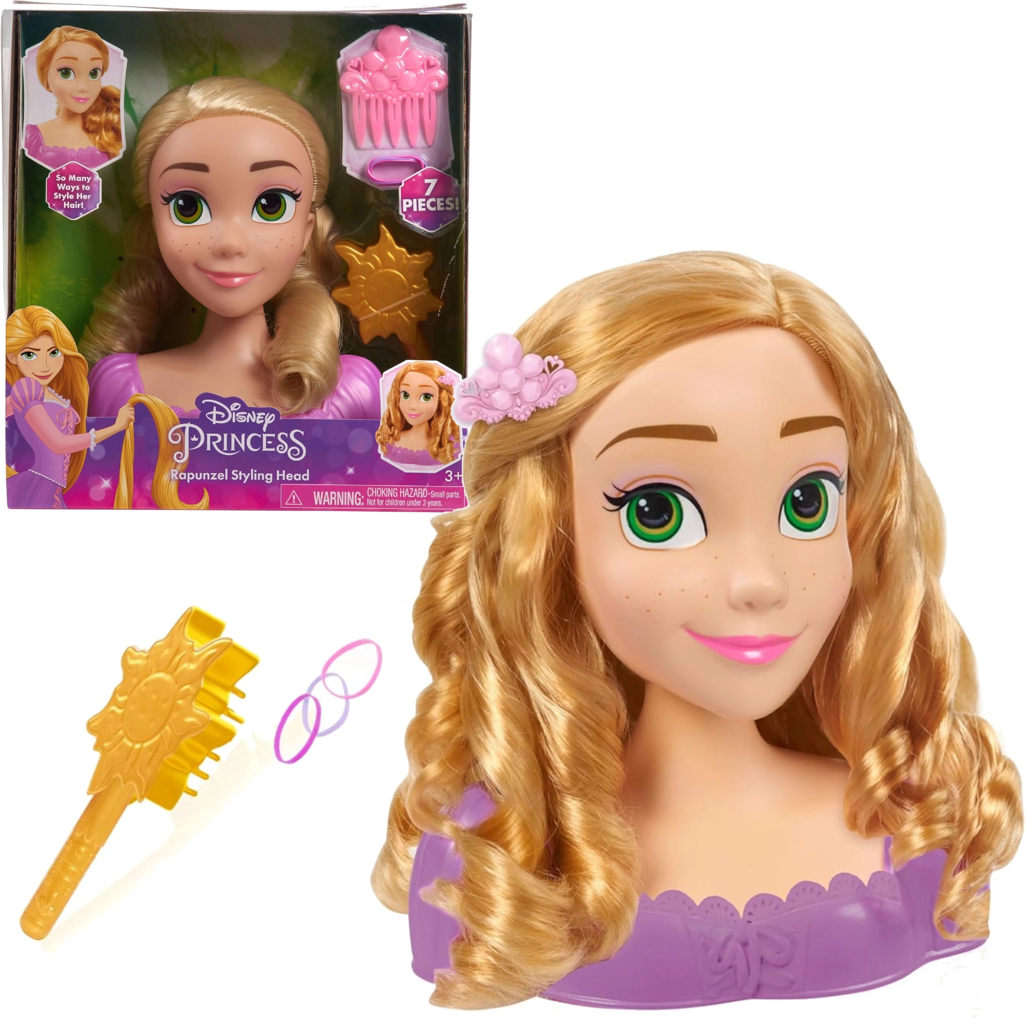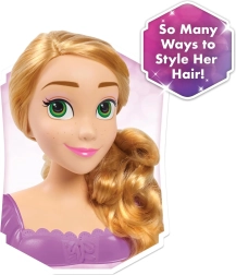 RAPUNZELĖS stiliaus galva su ikoniniais, ilgais šviesiais plaukais suteikia vaikams begalinį džiaugsmą šukuojant, pinant ir puošiant. Stabilus pagrindas ir kokybiškas atlikimas užtikrina patogų ir saugų žaidimą, o teminiai priedai, įkvėpti pasakos, atgyja kiekvieno vaiko fantazijoje.