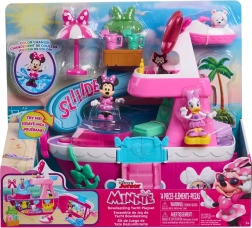 Rinkinyje yra MINNIE, DAISY ir mielas šuniukas Snowpuff figūrėlės, kurias galite sodinti į krėsliukus, sūpuoti ar leisti čiuožykla. Šviesos, garsai ir blizgantis „diskokamuolys“ suteikia kiekvienai scenai magišką nuotaiką, o šaltas vanduo baseine aktyvuoja magišką spalvos keitimą.