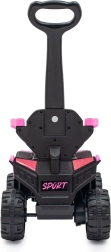 Stilingas elektrinis vaikų balansinis dviratukas Baby Mix Ruggy baby pink spalvos sujungia 18 W elektrinę pavarą, stabilų visureigio stilių ir saugų valdymą su vairavimo rankena. Ergonomiška ekologinės odos sėdynė, dideli ratai ir tvirta konstrukcija užtikrina patogų važiavimą net nelygiu paviršiumi, o tėvai gali kontroliuoti važiavimą dėl aukštos rankenos.