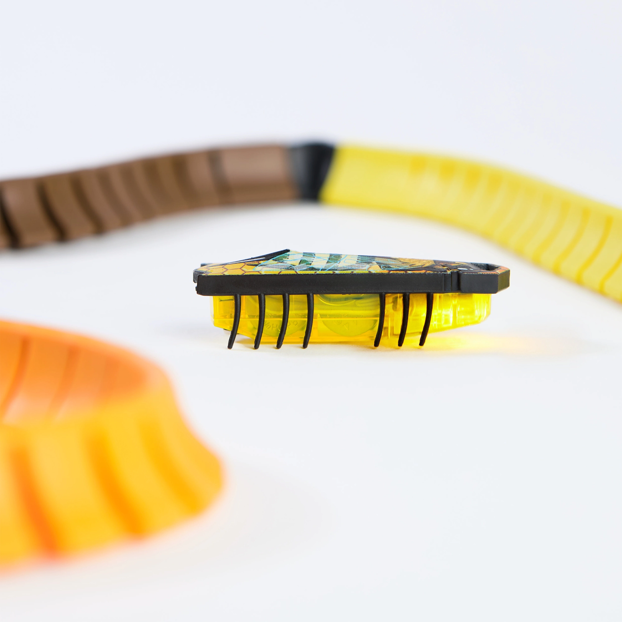 HEXBUG NANO FLASH pradinis rinkinys suteikia dinamiškos veiklos kišeniniu dydžiu. Permatomas geltonas vabalėlio korpusas šviečia, daugybė elastingų kojelių leidžia jam judėti į visas puses, o jūs stebite, kaip vabalėlis instinktyviai skinasi kelią trasa. Lanksčias sieneles paprastai įspausite į jungtis ir per akimirką sukursite naujas trasas ir formas – nuo lankų iki vingiuotų koridorių.