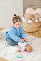 Vaikai gali treniruotis pervystyti, šukuoti ir „prižiūrėti“ lėlytę su priedų rinkiniu, kuris atrodo kaip tikras – idealiai tinka empatijai ir vaidmenų žaidimui ugdyti.