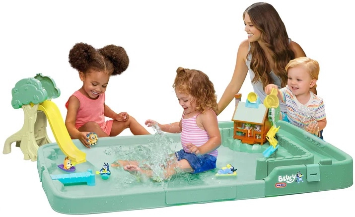 Vandens stalas BLUEY Bushland Adventures puikiai tinka kelių vaikų bendram žaidimui. Atviros žaidimų zonos, integruota čiuožykla, medis ir namelis su veikiančiu vandens ratu skatina kūrybiškumą, lavina smulkiąją motoriką ir socialinius įgūdžius. Kanalėliai ir užtvankos leidžia nukreipti vandens srautą ir kurti fontanėlius (galima prijungti žarną), tad kiekvienas žaidimas vis kitoks.