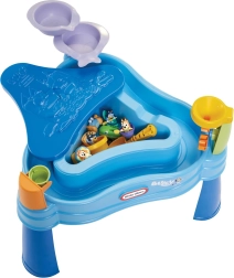 LITTLE TIKES BLUEY stalas atneša gausiai įrengtą vandens ir smėlio žaidimų aikštelę tiesiai į jūsų sodą, terasą ar balkoną. Išorinis žiedas sukuria linksmą „tingią upę“ pilstymui, semimui ir taškymuisi, o vidinė trikampė kamera idealiai tinka smėliui ar papildomam vandeniui. Du kaskadiniai baseinėliai, persipylimo kibiras ir piltuvas su besisukančiais ratais lavina pojūčius ir natūralų vaikų smalsumą.