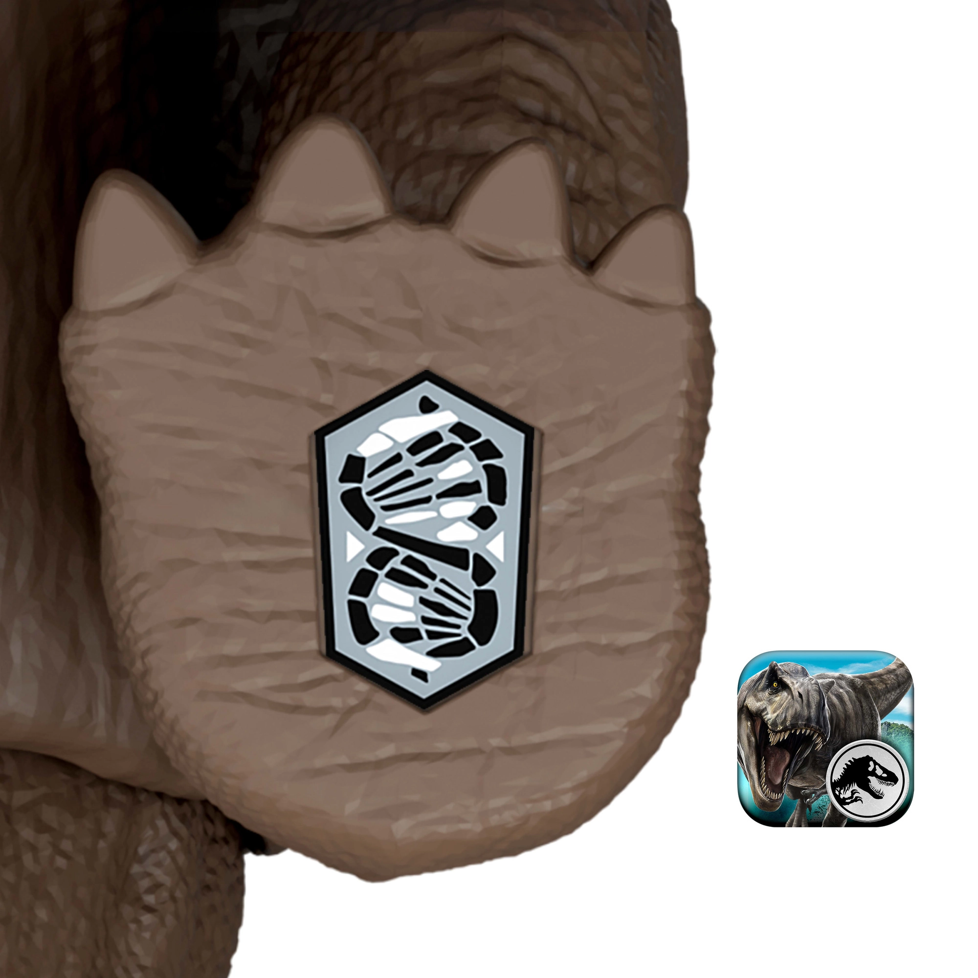 Skaitmeninis AR pramogų turinys: nuskenuokite sekimo kodą ant figūrėlės kojos nemokamoje programėlėje Jurassic World Play (Android/iOS) ir atrakinkite papildytosios realybės turinį – praplėskite savo virtualią kolekciją ir atgaivinkite priešistorinius nuotykius.