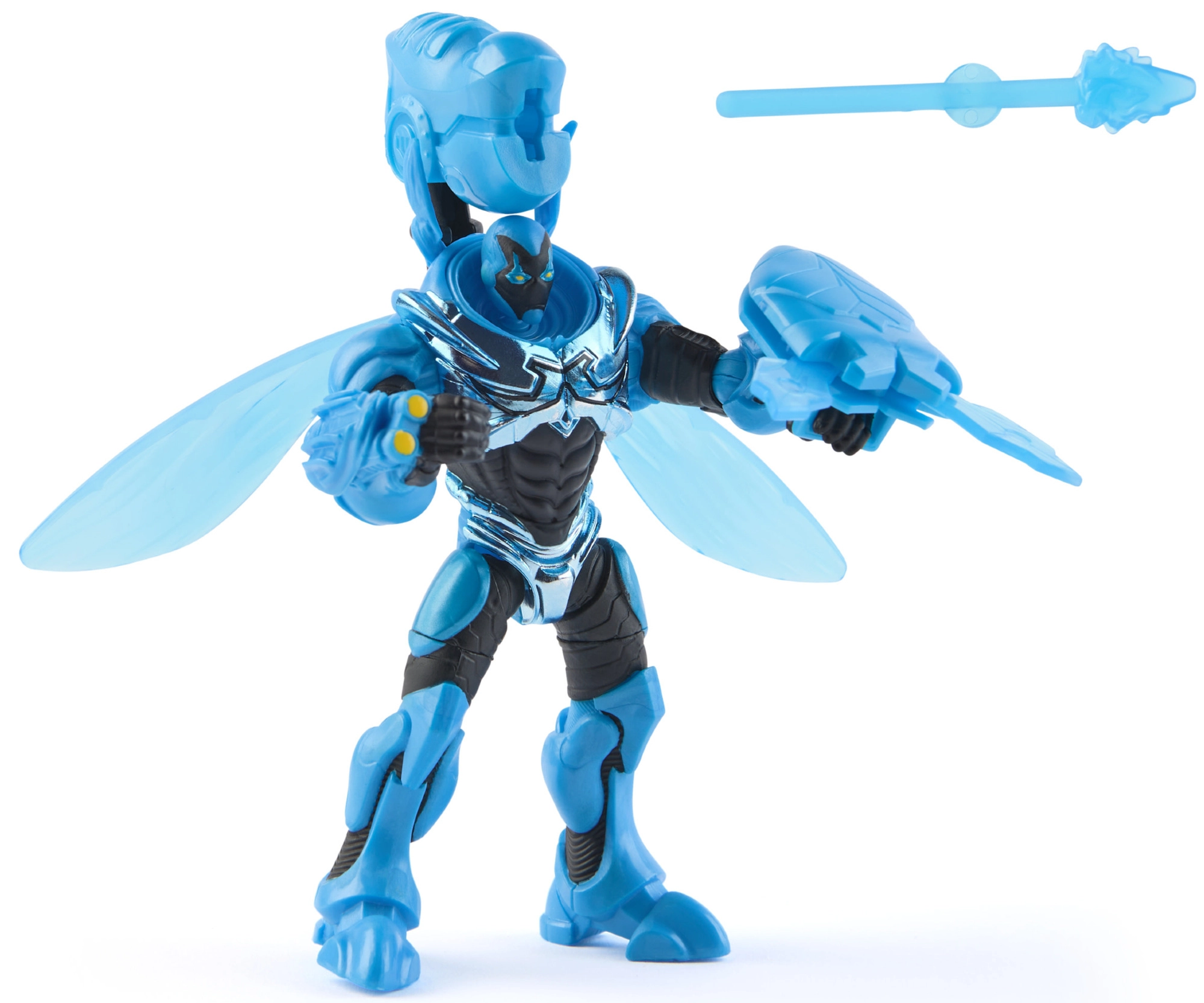 Permatomi skydai, sparnai ir ginklas suteikia žaidimui ryškumo ir ištikimai atspindi BLUE BEETLE įrangą.