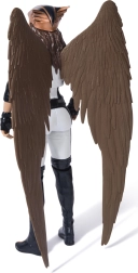 Dideli, detaliai suformuoti sparnai su plunksnų tekstūra pabrėžia herojės išvaizdą ir puikiai atrodo eksponuojant.