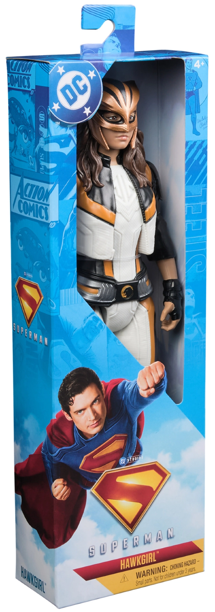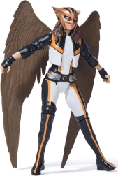 HAWKGIRL figūrėlė baltai–juodame kostiume su auksiniais akcentais tiksliai atspindi kovotojos iš Thanagaro komiksinį ir animacinį įvaizdį. Dėl artikuliuotų rankų, kojų ir galvos lengvai nustatysite kovines bei skrydžio pozas su atskirais rudais sparnais.