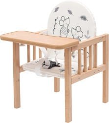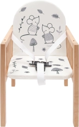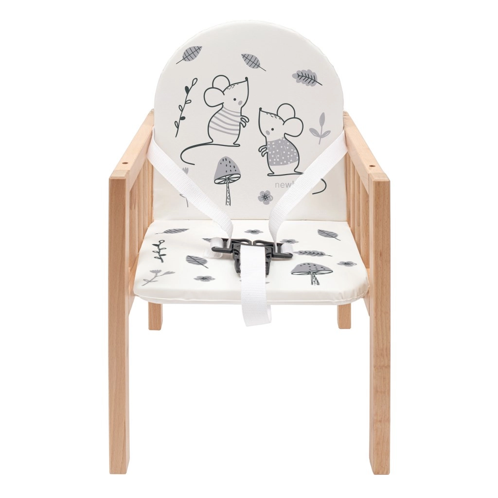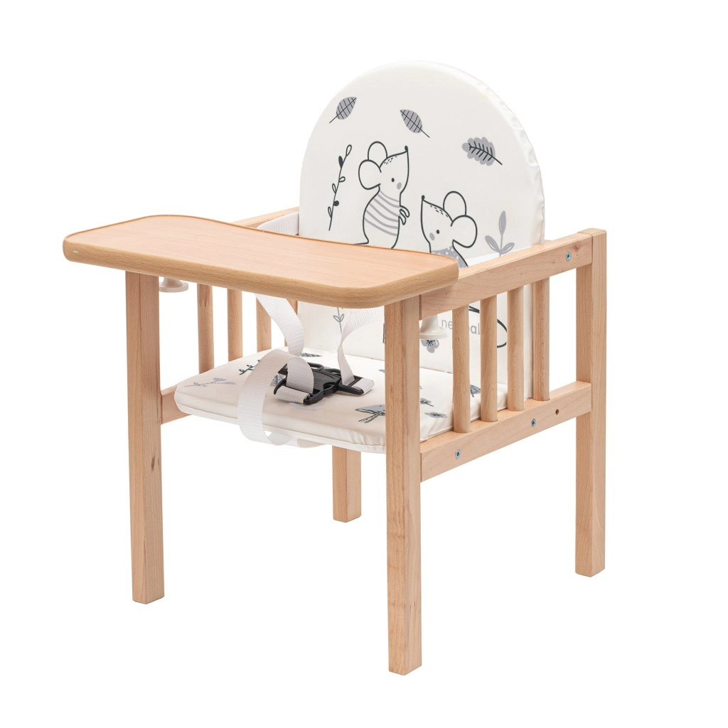 Suteikite savo vaikui saugią ir patogią vietą tiek valgymui, tiek pramogoms. Medinė kėdutė NEW BABY Jerry pagaminta iš aukštos kokybės buko medienos, užtikrinančios maksimalų stabilumą ir patvarumą. Minkštas paminkštinimas su linksmomis iliustracijomis ir praktiškas, lengvai valomas stalelis užtikrina švarą ir kasdienį komfortą.