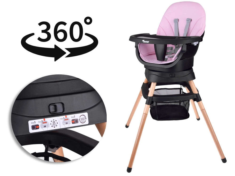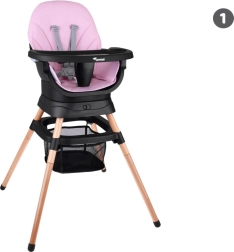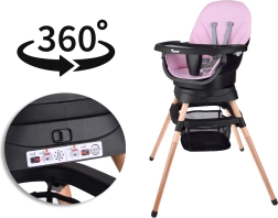 Praktiška vaikiška maitinimo kėdutė 6 viename, auganti kartu su jūsų vaiku. Siūlo 360° pasukamą sėdynę, modulinę konstrukciją, penkių taškų saugos diržus, reguliuojamą ir nuimamą padėklą bei lengvai valomus užvalkalus. Stabili konstrukcija ir modernus dizainas tinka bet kuriuose namuose.