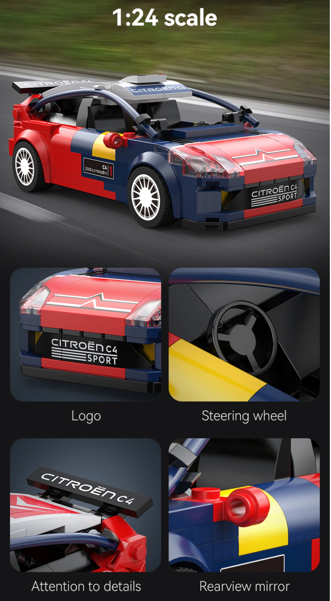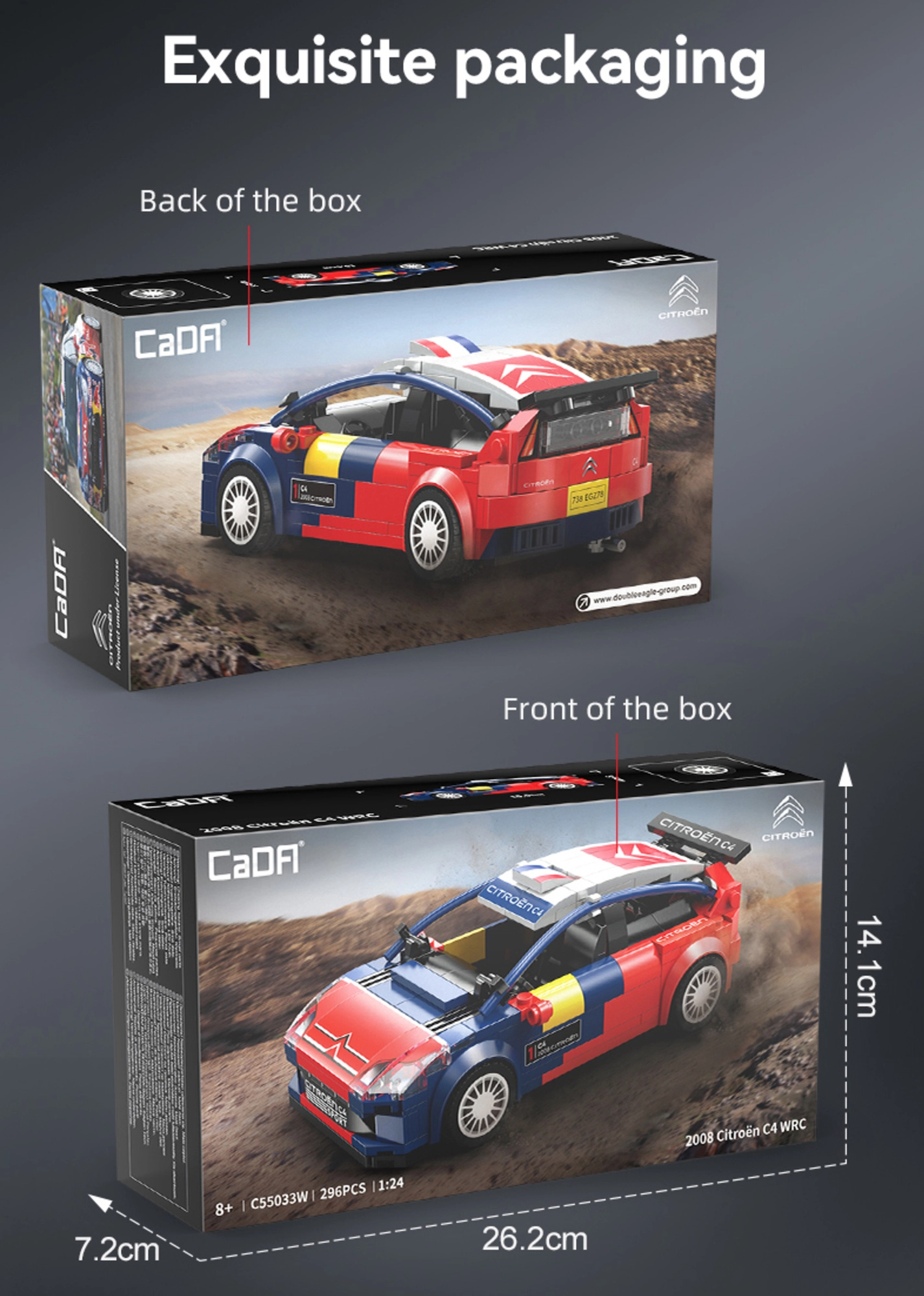 Mėgaukitės precizišku statymu ir įspūdinga licencijuoto modelio CITROËN C4 WRC išvaizda. CaDA konstruktorius siūlo subalansuotą lengvo statymo ir puikios kokybės derinį, dėl kurio sukursite stacionarų modelį su sklandžiu riedėjimu – paruoštą ekspozicijai ir žaismingiems važiavimams lygiu paviršiumi.