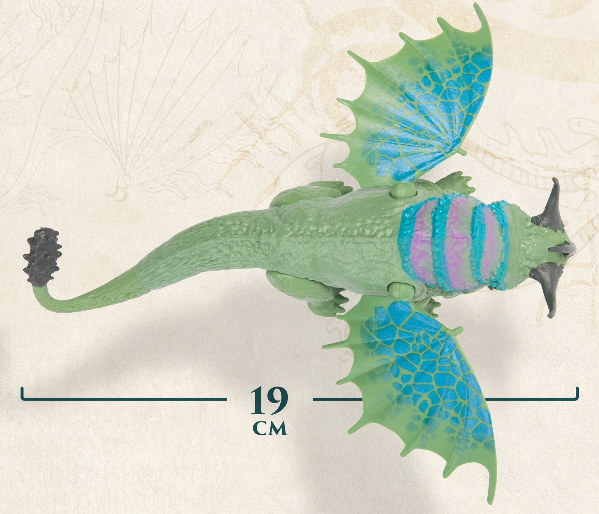 Rumblehorn figūrėlė išsiskiria masyvia išvaizda, ryškiais ragais ir dideliais sparnais su unikaliu raštu. Įkvėpta filmų pasaulio DREAMWORKS Dragons, ji ištikimai atkuria mėgstamo slibino išvaizdą. Judantys sąnariai leidžia kurti dinamiškas pozas – nuo pakilimo virš Berko iki kovinių stovėsenų.
