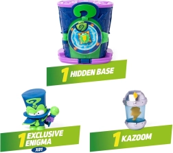 Patirkite įtampą ir nuotykius su žaidimų rinkiniu SuperThings – Enigmos slėptuvė, įkvėptu serialo Kazoom Power. Bazeje slypi slaptieji praėjimai, saugumo elementai ir gudrios spąstai, kurie patikrins jūsų sumanumą. Atrakinkite skydelį teisinga seka ir gaukite prieigą prie gyvybiškai svarbios Kazoom energijos anksčiau, nei ją pagrobs piktadariai.