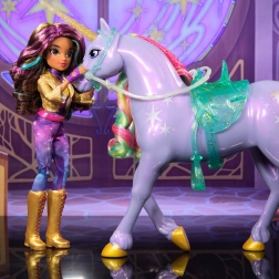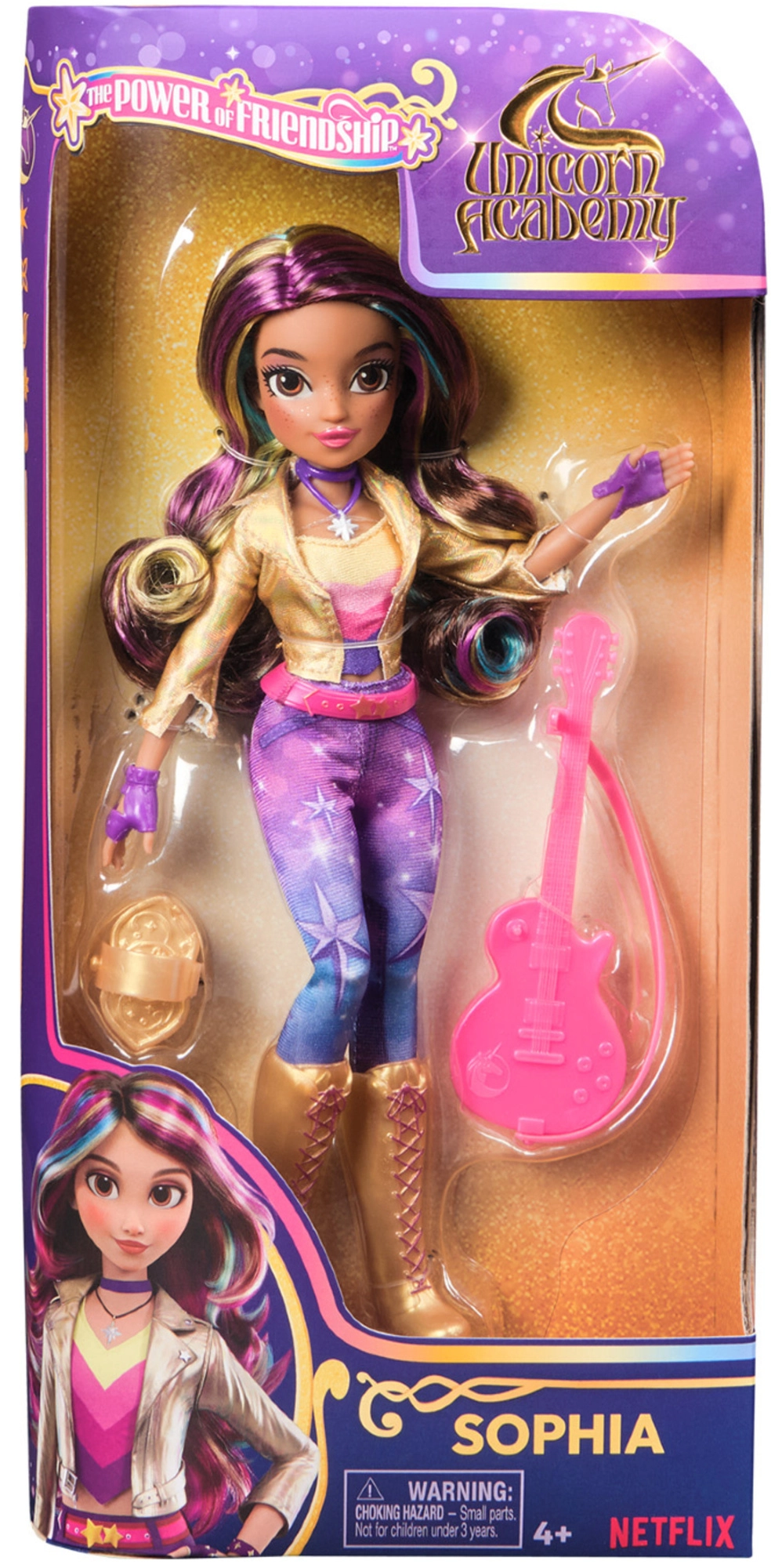 Įženkite į UNICORN ACADEMY magišką pasaulį su 24 cm ūgio Sophia lėlyte iš Spin Master. Stilinga herojė su ilgais spalvotais plaukais, auksine striuke ir jodinėjimo kelnėmis siūlo realistišką personažo iš serialo atvaizdavimą, 9 lankstumo taškus lengvam pozavimui ir gausius aksesuarus kūrybiškam žaidimui. Puikus pasirinkimas pasakų gerbėjams, fantazijos žaidimams ir kolekcionieriams.