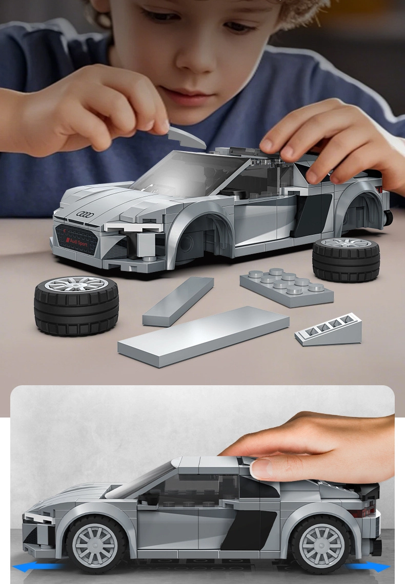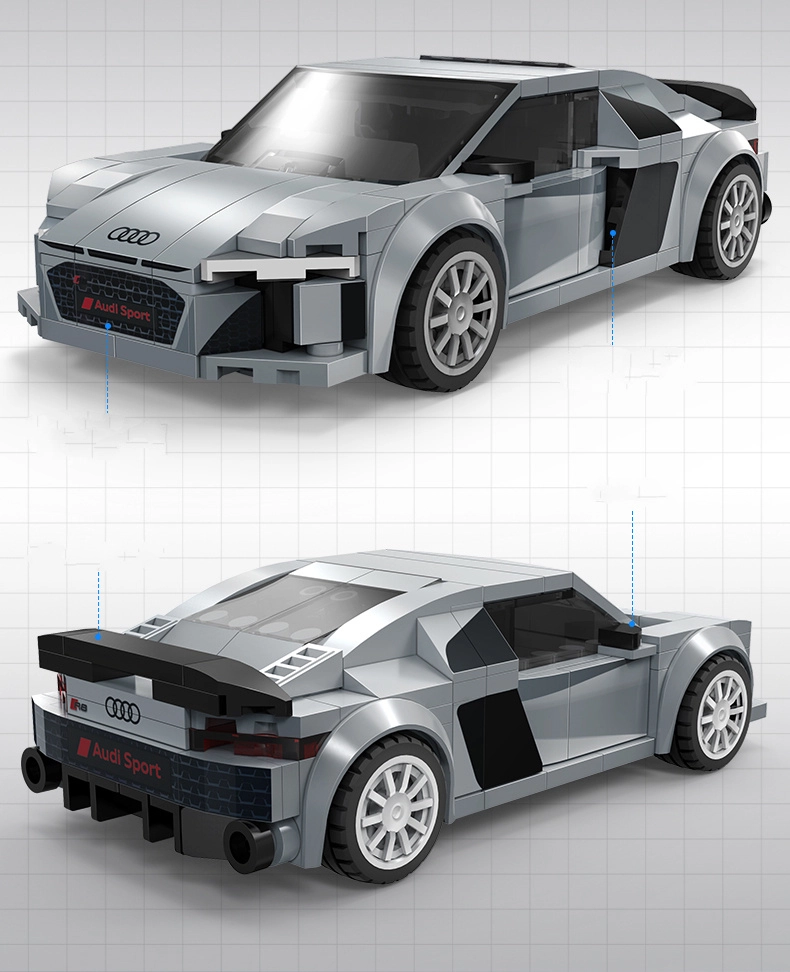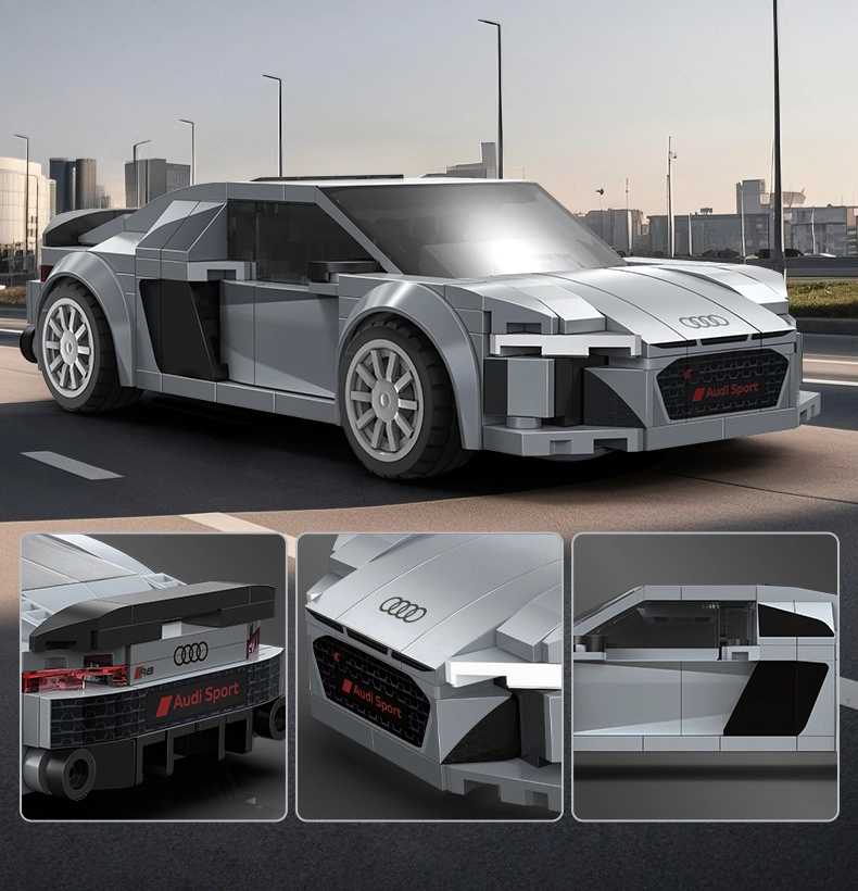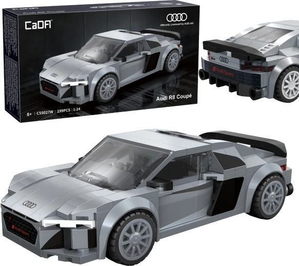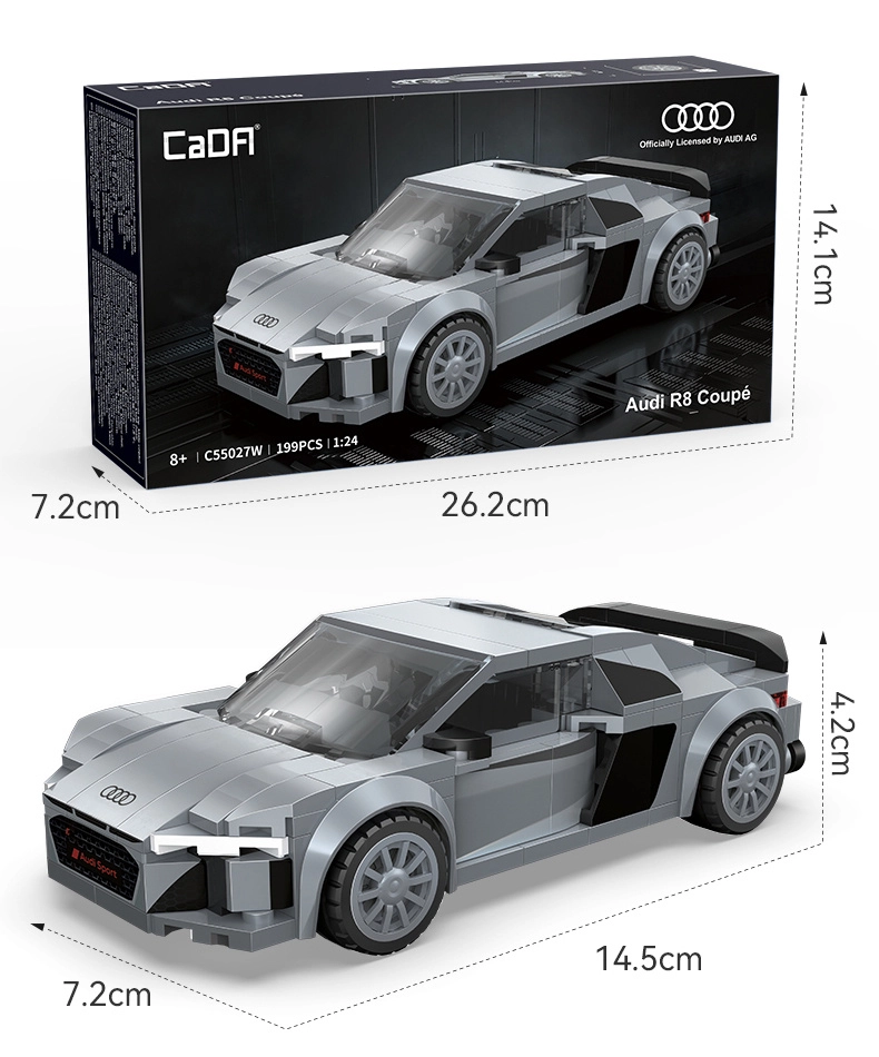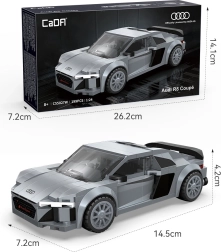 Šis licencijuotas CaDA konstruktorius tiksliai atkuria agresyvias sportinio automobilio AUDI R8 Coupé (2019) linijas. Dėl kokybiškų detalių ir tikslių spaudinių be lipdukų išryškėja realistiškas priekinis bamperis su juodu tinkleliu, dvigubos oro įsiurbimo angos ir švarios šoninės kontūrinės linijos. Surinktas modelis yra maždaug 14,5 × 7,2 × 4,2 cm ir puikiai atrodo lentynoje ar ant darbo stalo.