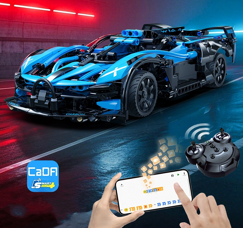 Sukurkite sportinį bolidą, kuris ne tik puikiai atrodo, bet ir važiuoja. Konstruktorius CaDA Bluefire Specter sujungia kūrybišką statybą ir šiuolaikinį RC valdymą. Surinkus gausite detalų 1:14 mastelio modelį, kurio matmenys 36,2 × 19,7 × 14,6 cm, su sklandžiu važiavimu ir valdymu į visas puses.