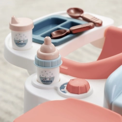 Staliukas švelnių pastelinių tonų puikiai tinka vaikų kambariui. Vonelėlė su išpylimo latakėliu, organizatoriai buteliukams ir įrankiams bei nulenkiamas pervystymo dangtis užtikrina tvarką ir patogų išdėstymą. 13 vnt. priedų (buteliukai, šaukštelis, indeliai ir kt.) daro žaidimą įtraukiantį ir tikrovišką.
