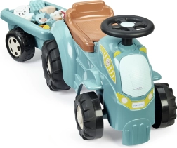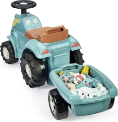 - Vaikiškas paspiriamas traktorius su priekaba ir kaladėlėmis