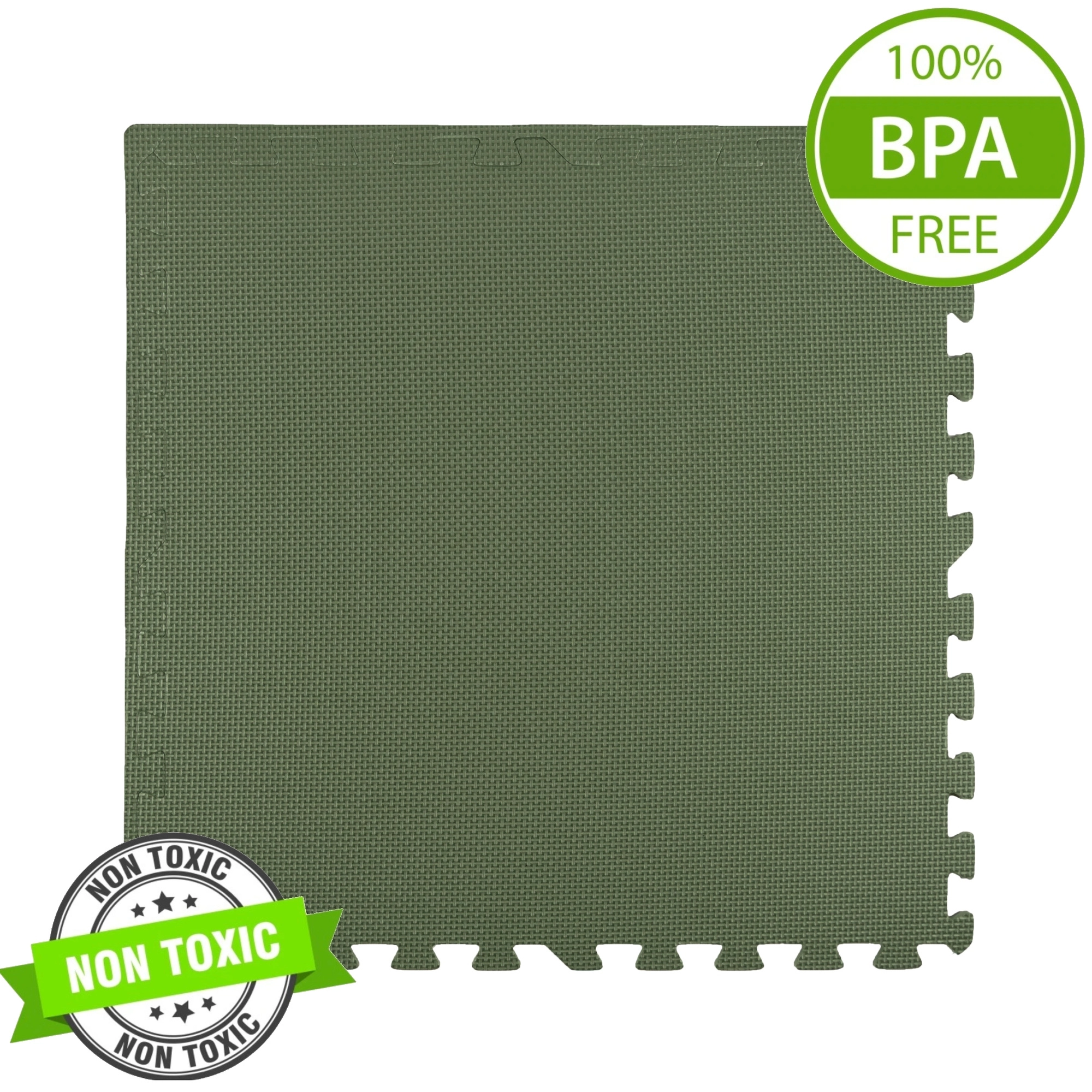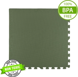 Minkštas ir saugus EVA putų kilimėlis chaki spalvos saugo nuo šalčio ir sugeria smūgius, yra atsparus vandeniui, lengvai valomas ir „auga“ kartu su vaiku. Rinkinyje yra 3 dideli elementai po 60 × 60 cm ir 6 krašteliai, kuriuos galima jungti į didesnį plotą arba įvairias formas. Atitinka EN 71 standartus ir turi CE sertifikatą.