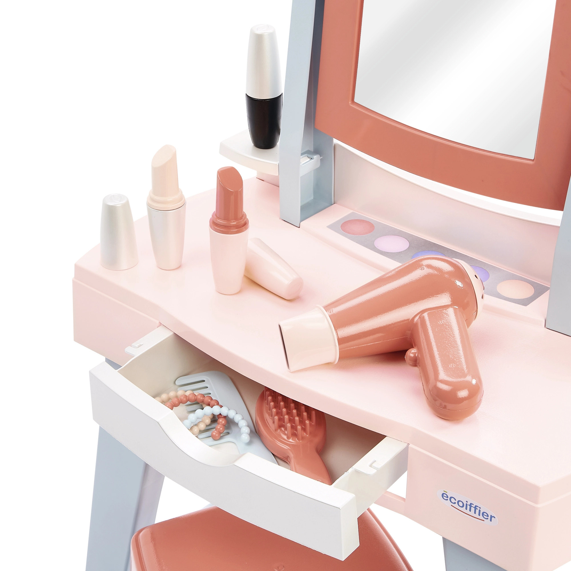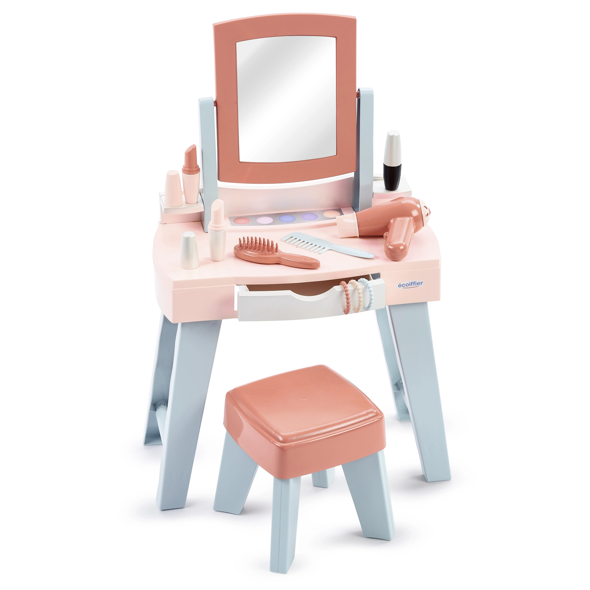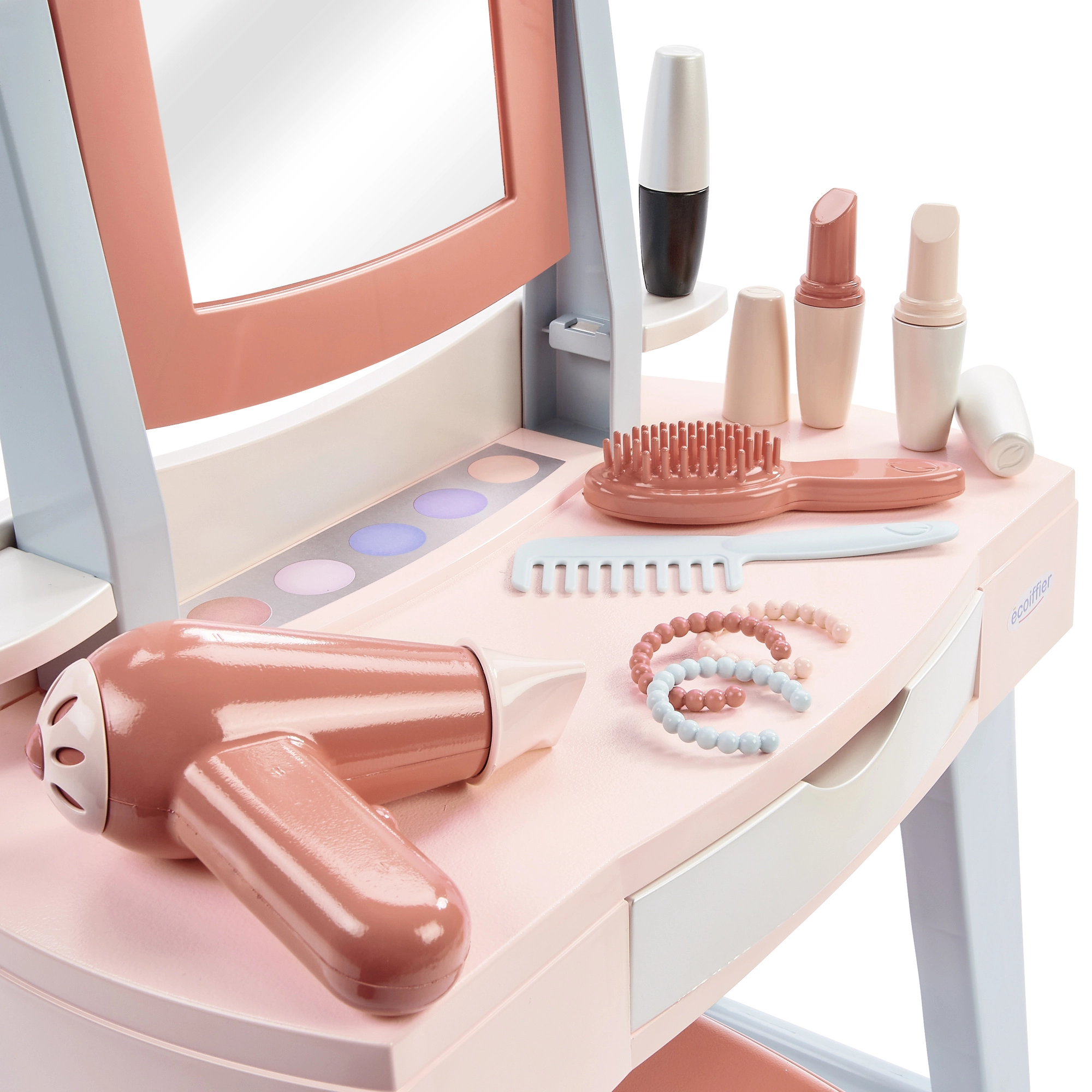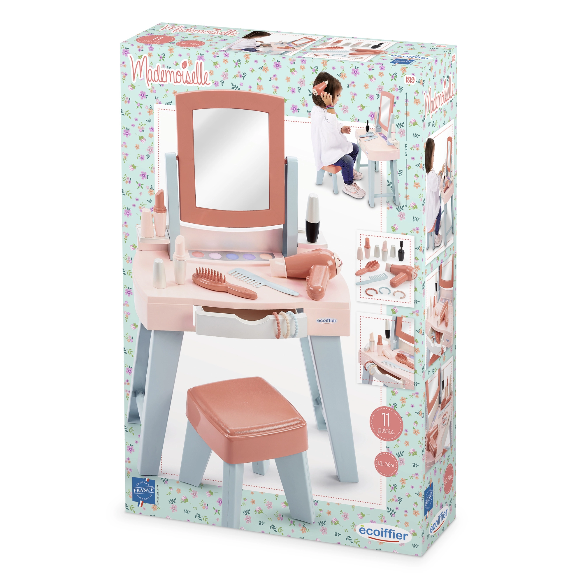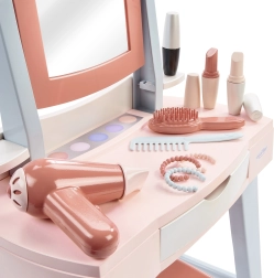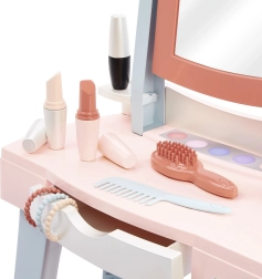 Mademoiselle tualetinis staliukas suteikia vaikams nuosavą grožio kampelį su veidrodžiu, staliuku ir patogia sėdyne. Gausus priedų rinkinys – nuo šukų ir šepečio iki vaikiško feno ir „makiažo“ – skatina vaidmenų žaidimus ir fantaziją, kartu moko tvarkingumo dėl integruoto stalčiuko.