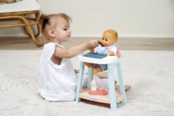Stabili aukšta kėdutė su padėklu leidžia vaikams patogiai „maitinti“ lėlę ir mėgdžioti tikrus valgymo ritualus.