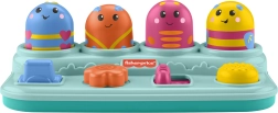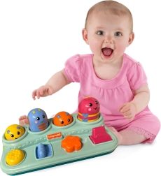 Šis interaktyvus iššokantis žaislas su tvirtu turkio spalvos pagrindu sukurtas mažoms rankytėms. Keturi spalvingi personažai „iššoka“ paspaudus mygtuką, pastūmus slankiklį, pasukus ratuką arba pervertus svirtelę. Taip vaikai natūraliai lavina suėmimą, miklumą ir koordinaciją, kartu atrasdami priežasties ir pasekmės magiją.