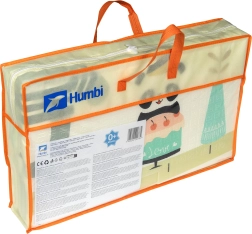 XPE medžiaga suteikia aukštą kokybę: ji bekvapė, netoksiška, atspari vandeniui ir labai atspari dėvėjimuisi. Kilimėlis yra neslystantis su švelniu reljefu geresniam stabilumui ir jutiminei stimuliacijai. Dėl sulankstomos konstrukcijos jį per kelias sekundes sulankstysite ir paslėpsite – telpa po lovyte ar tarp baldų. Pridedamas užsegamas užtrauktuku krepšys su rankena patogiam nešiojimui namuose ir lauke.