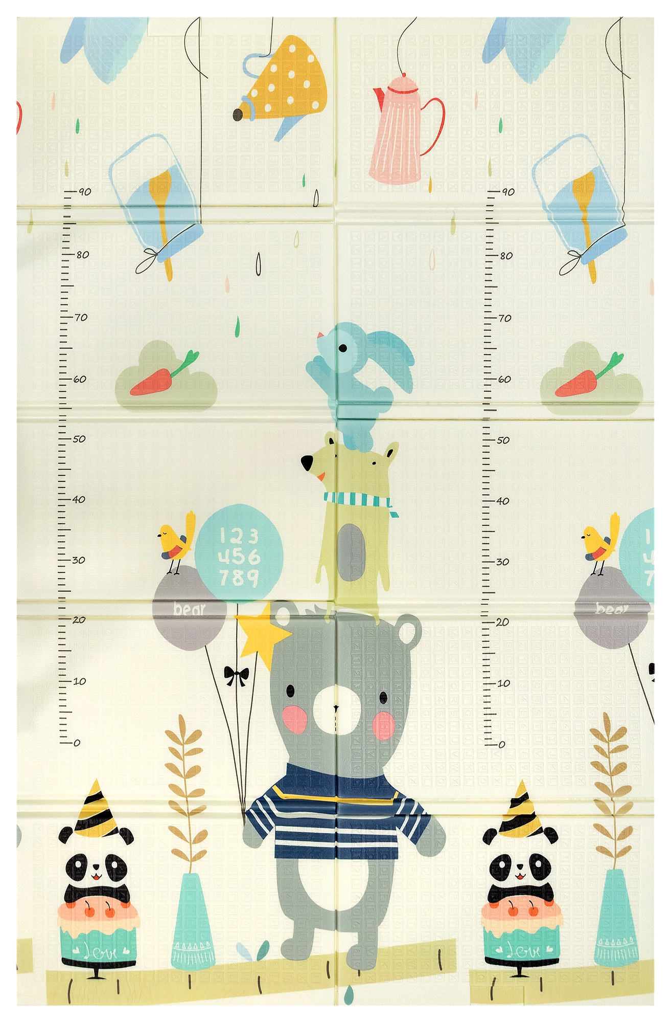 Atraskite universalų kilimėlį, kuris auga kartu su jūsų vaiku nuo pirmųjų gyvenimo dienų. Dėl 1 cm storio puikiai izoliuoja nuo šalčio ir sugeria smūgius, todėl idealiai tinka saugiam žaidimui, ropojimui ir pirmiesiems žingsniams. Dvipusis dizainas vienoje pusėje siūlo žavingas pandas, o kitoje – gyvūnėlius su skaičiais ir ūgio matuokliu, kas skatina ankstyvą raidą ir mokymąsi.