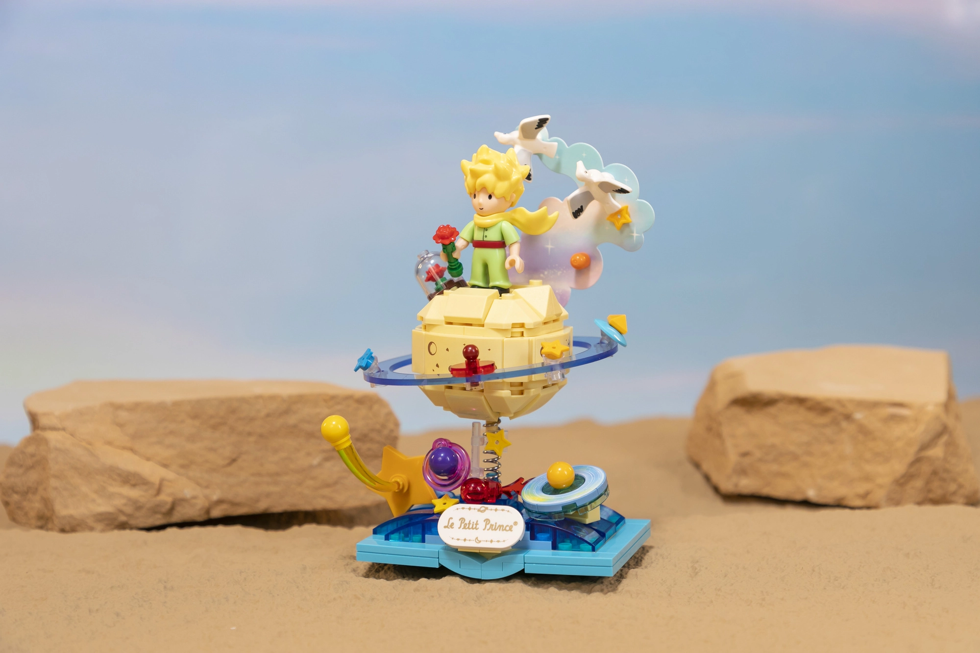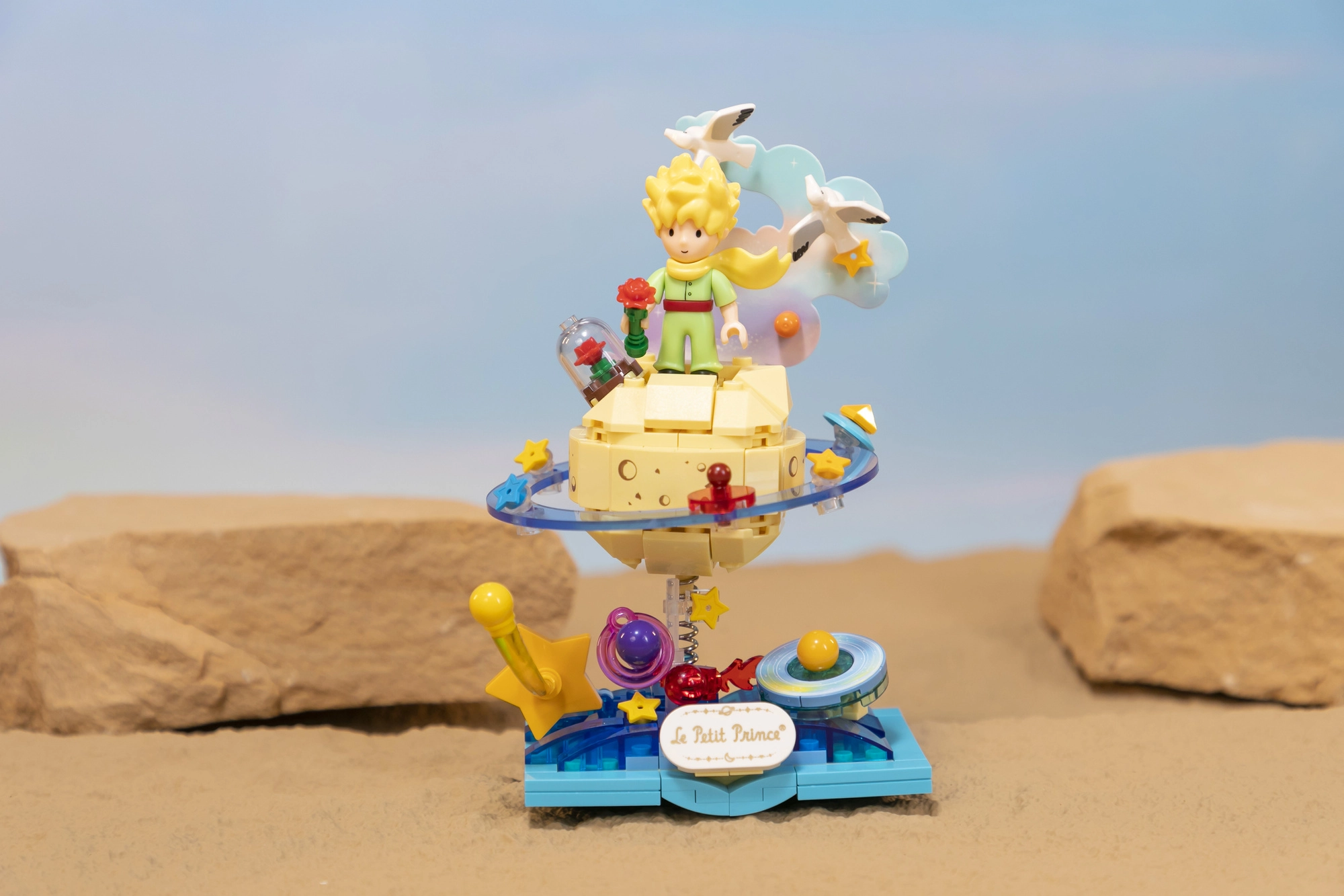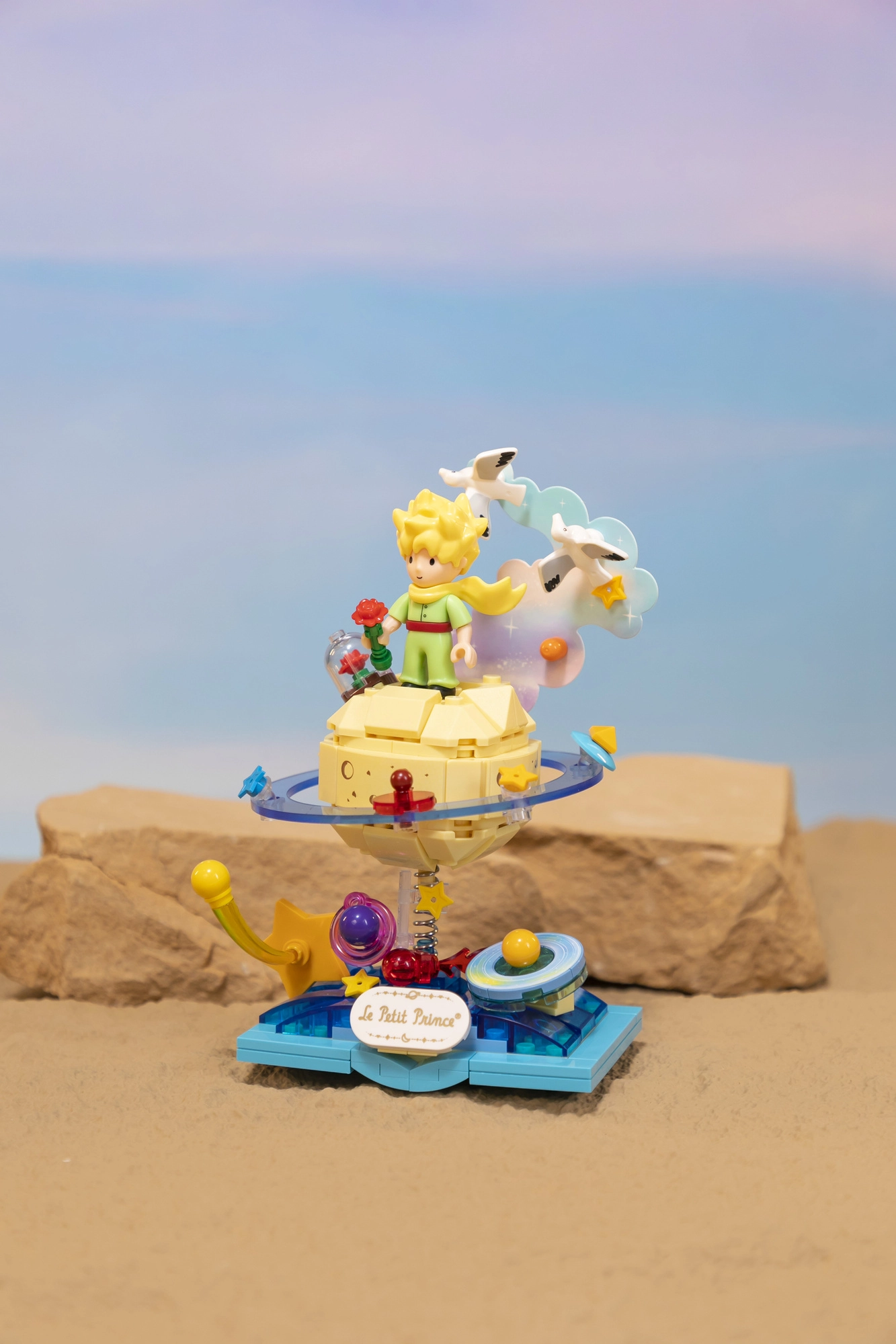 Ši oficialiai licencijuota kolekcinė scena, įkvėpta Le Petit Prince istorijos, jungia literatūrinę nostalgiją su šiuolaikiniu dizainu. Sudėliosite Mažojo princo figūrą, stovinčią ant mažos planetos su žiedais, žvaigždutėmis ir mini planetomis – rezultatas yra elegantiška dekoracija, kuri iškart patraukia dėmesį.