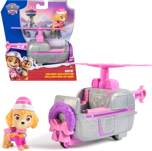 Kalėdinis Skye sraigtasparnis iš Spin Master suteikia vaikams autentišką PAW PATROL serialo atmosferą. Stilingas pilkai rožinis sraigtasparnis su šventiniu vainiku priekyje turi atidaromą kabiną, į kurią galima pasodinti Skye figūrėlę su žiemos kepure. Dėl besisukančio rotoriaus ir trijų ratukų vaikai mėgausis ir „nusileidimu“, ir „skrydžiu“ po kambarį.