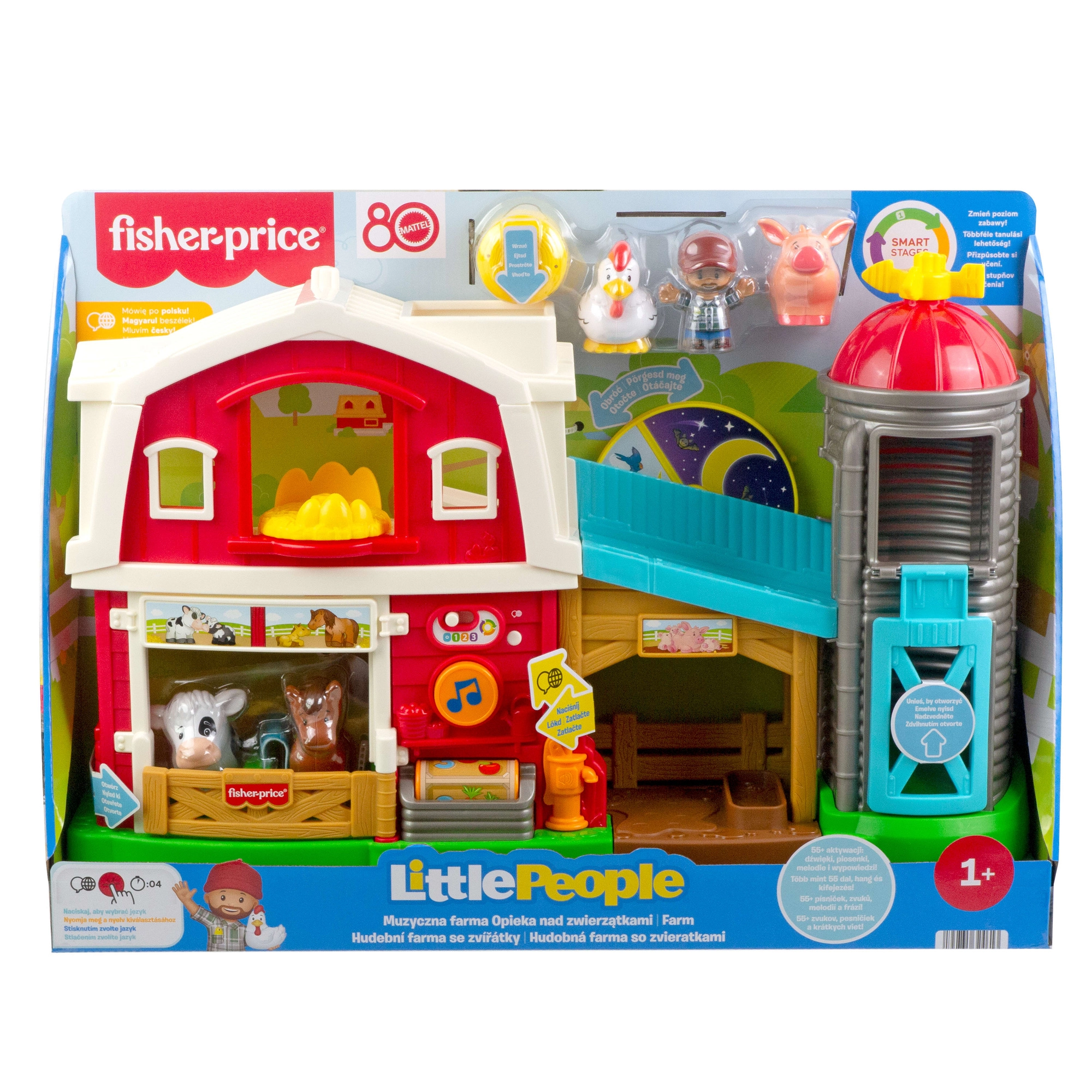 Šis interaktyvus Little People ūkis paverčia žaidimą smagiu mokymusi. Vaikai gali atidaryti ir uždaryti vartus, perjungti dieną/naktį, leisti šieno ryšulį iš siloso ir paguldyti gyvūnėlius į jų gardus. Dideli valdikliai, natų mygtukas ir režimų slankiklis pritaikyti mažoms rankytėms.