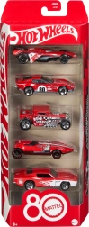 Šis jubiliejinis leidimas pristato penkis legendinius HOT WHEELS modelius, kurie apibrėžia greičio ir stiliaus dvasią: Bone Shaker, Twin Mill, El Segundo Coupe, Custom Otto ir Bad to the Blade. Kiekvienas 1:64 mastelio automobilėlis siūlo autentiškas detales, ryškias grafikas ir kokybišką metalinį atlikimą.
