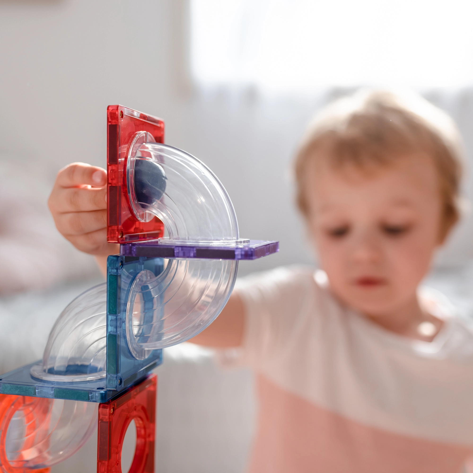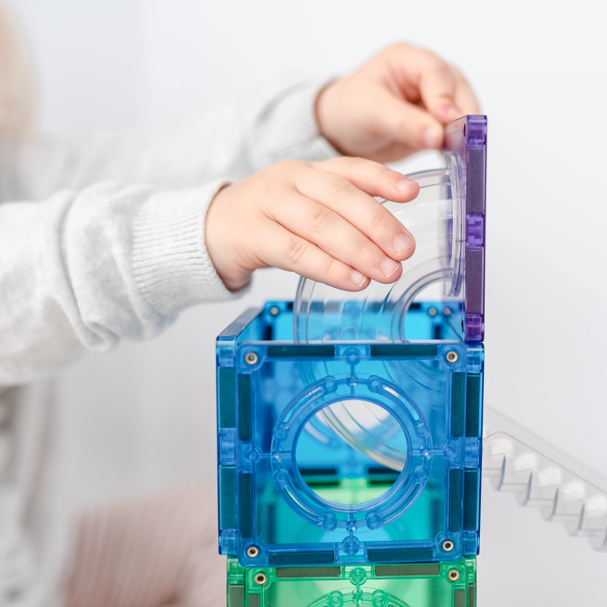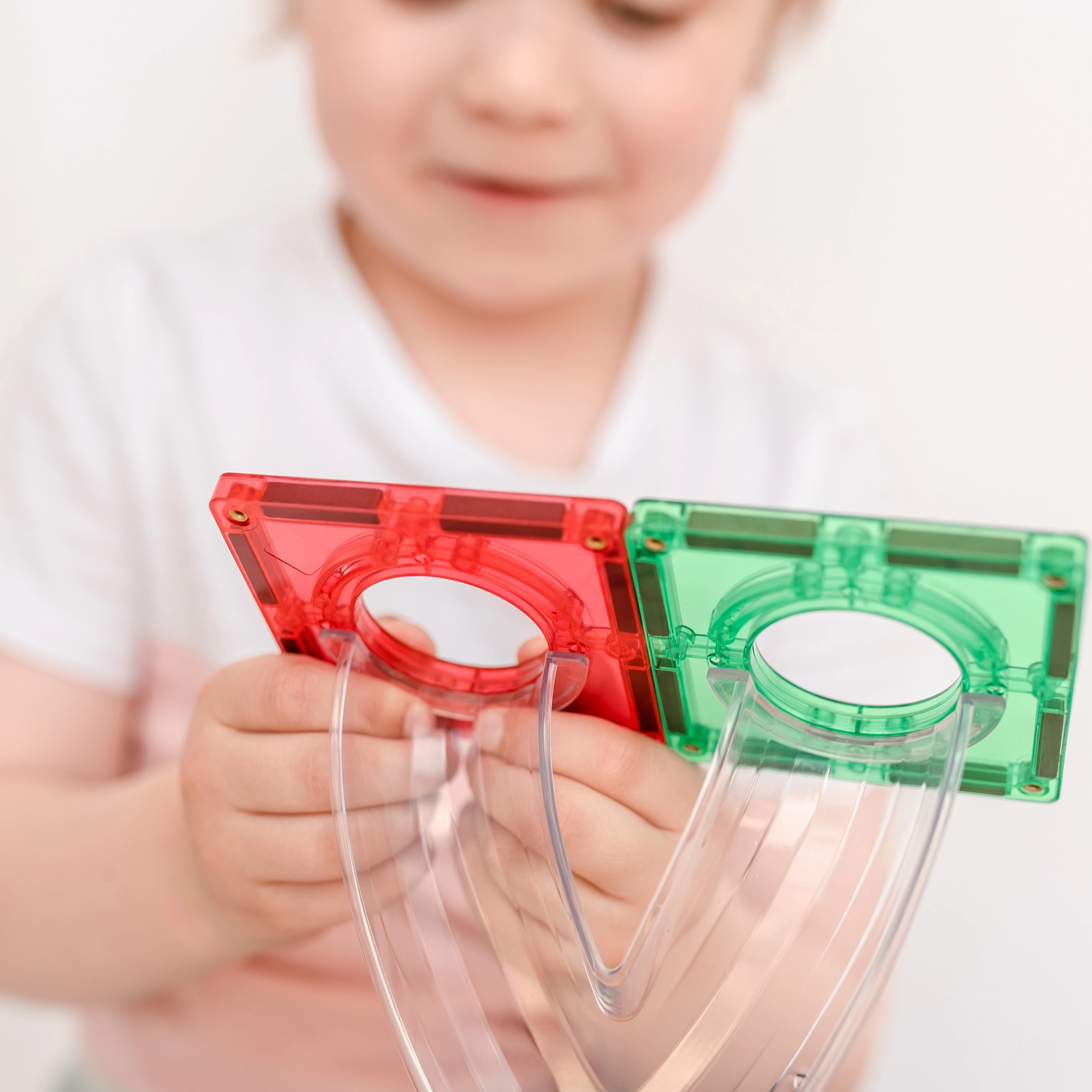 Statykite spalvotas bokštus, tiltus ir išradingus rutuliukų takelius, stebėkite rutuliukų kelią skaidriais tuneliais ir atraskite gravitacijos, greičio ir pusiausvyros principus. Vaivorykštinių spalvų Connetix plytelės turi tvirtai kniedėmis sutvirtintus magnetus, kurie traukia iš visų pusių, todėl konstrukcijos išlieka stabilios, o „spragtelėjimas“ jungiant – itin malonus.