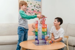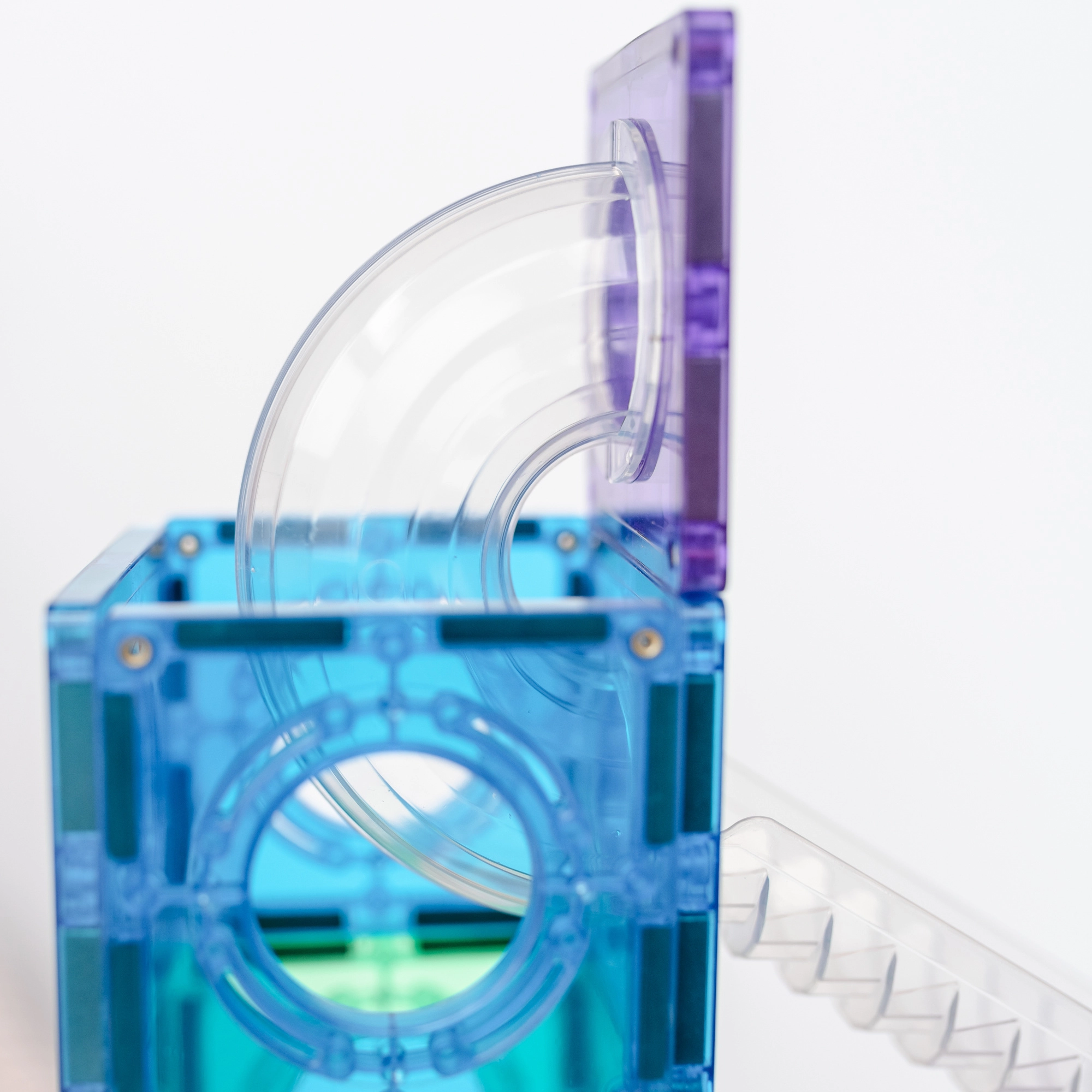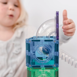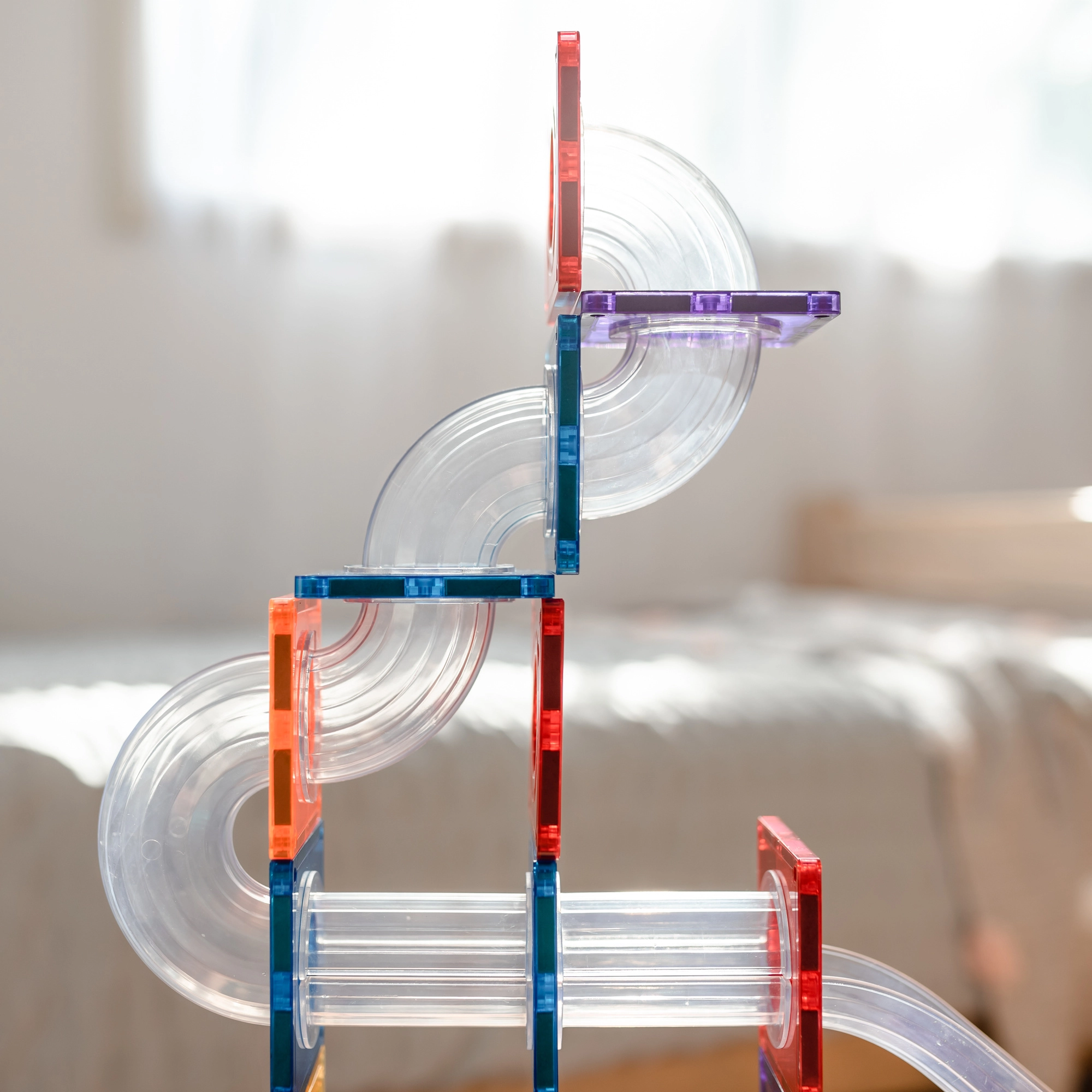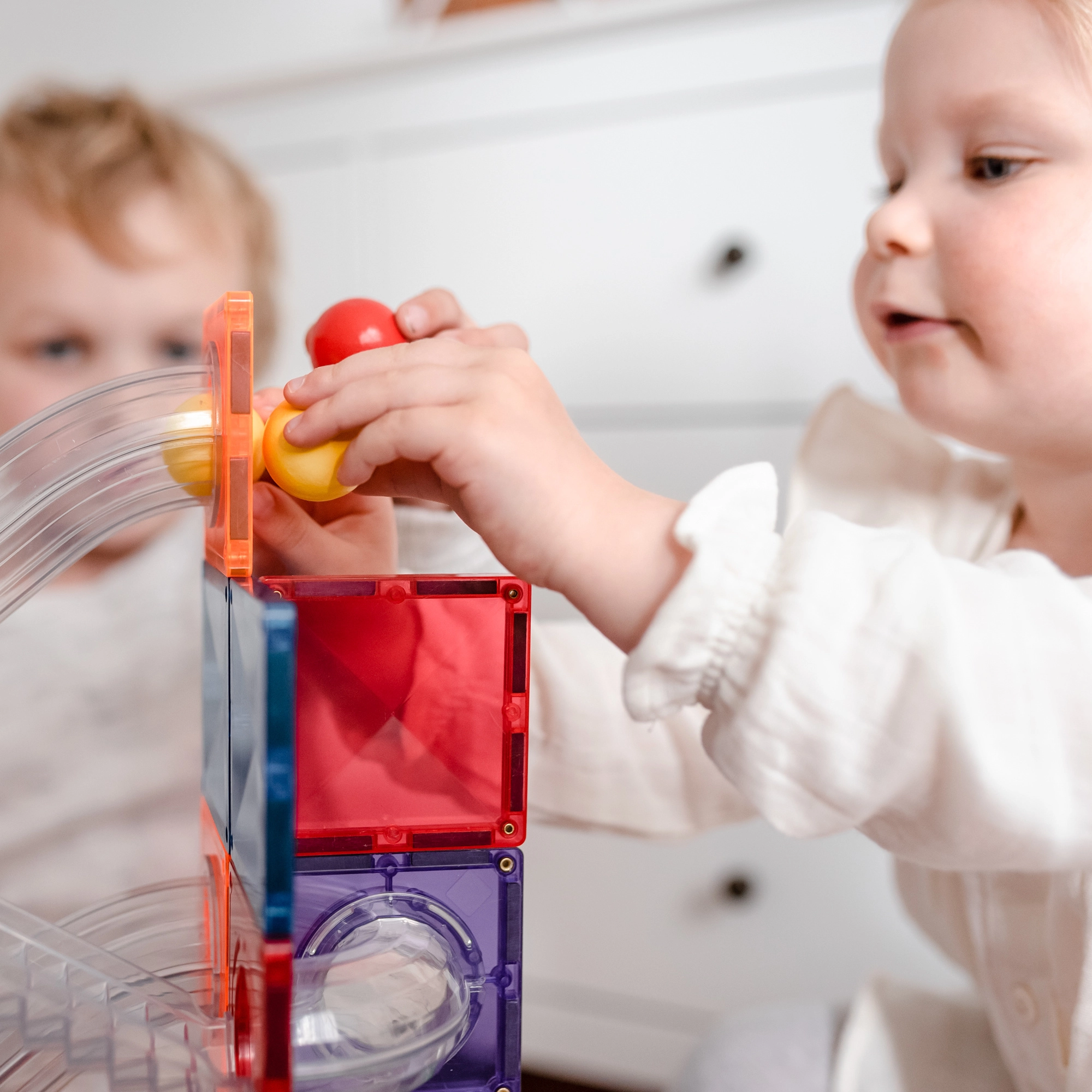 Statykite spalvotas bokštus, tiltus ir išradingus rutuliukų takelius, stebėkite rutuliukų kelią skaidriais tuneliais ir atraskite gravitacijos, greičio ir pusiausvyros principus. Vaivorykštinių spalvų Connetix plytelės turi tvirtai kniedėmis sutvirtintus magnetus, kurie traukia iš visų pusių, todėl konstrukcijos išlieka stabilios, o „spragtelėjimas“ jungiant – itin malonus.
