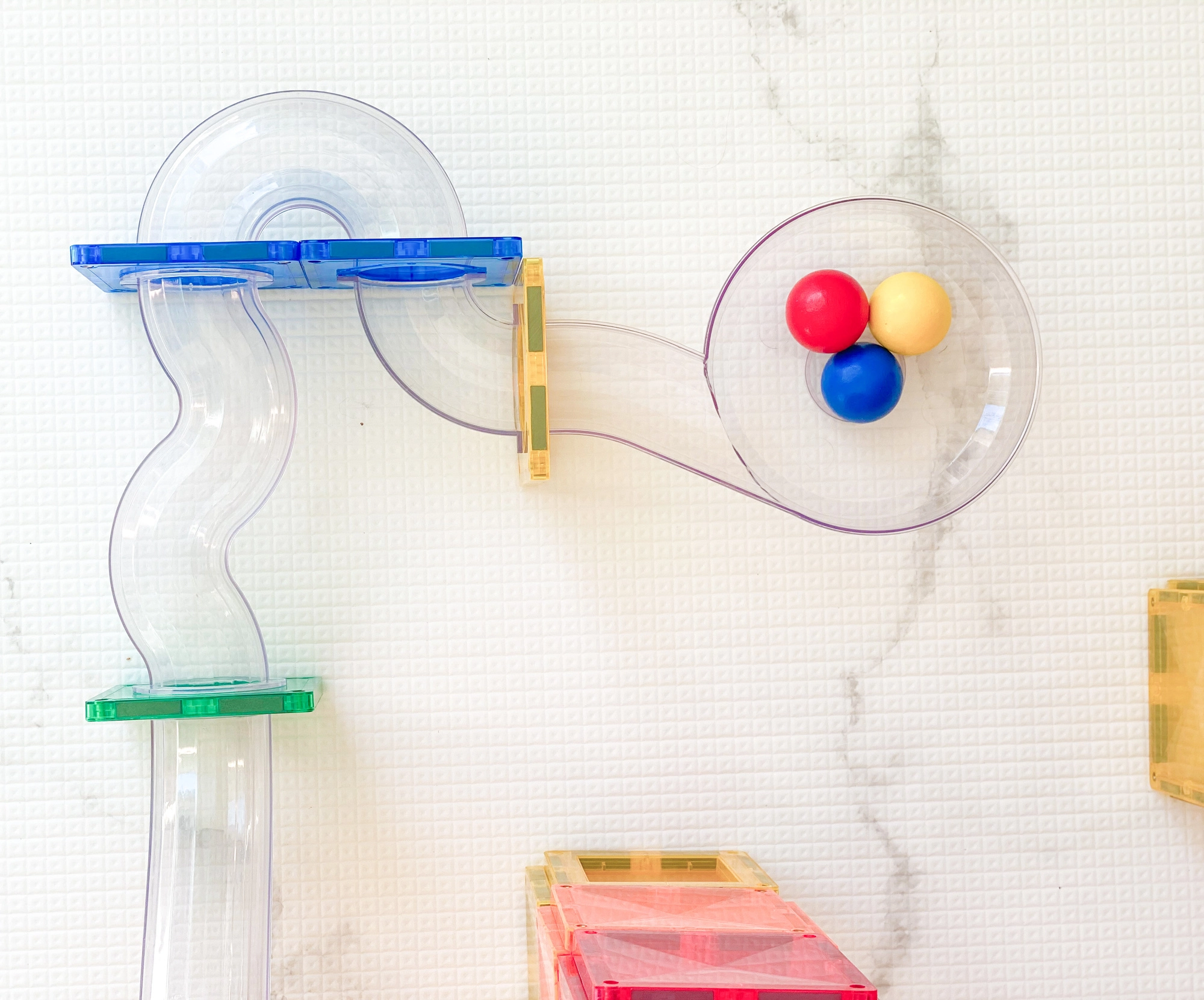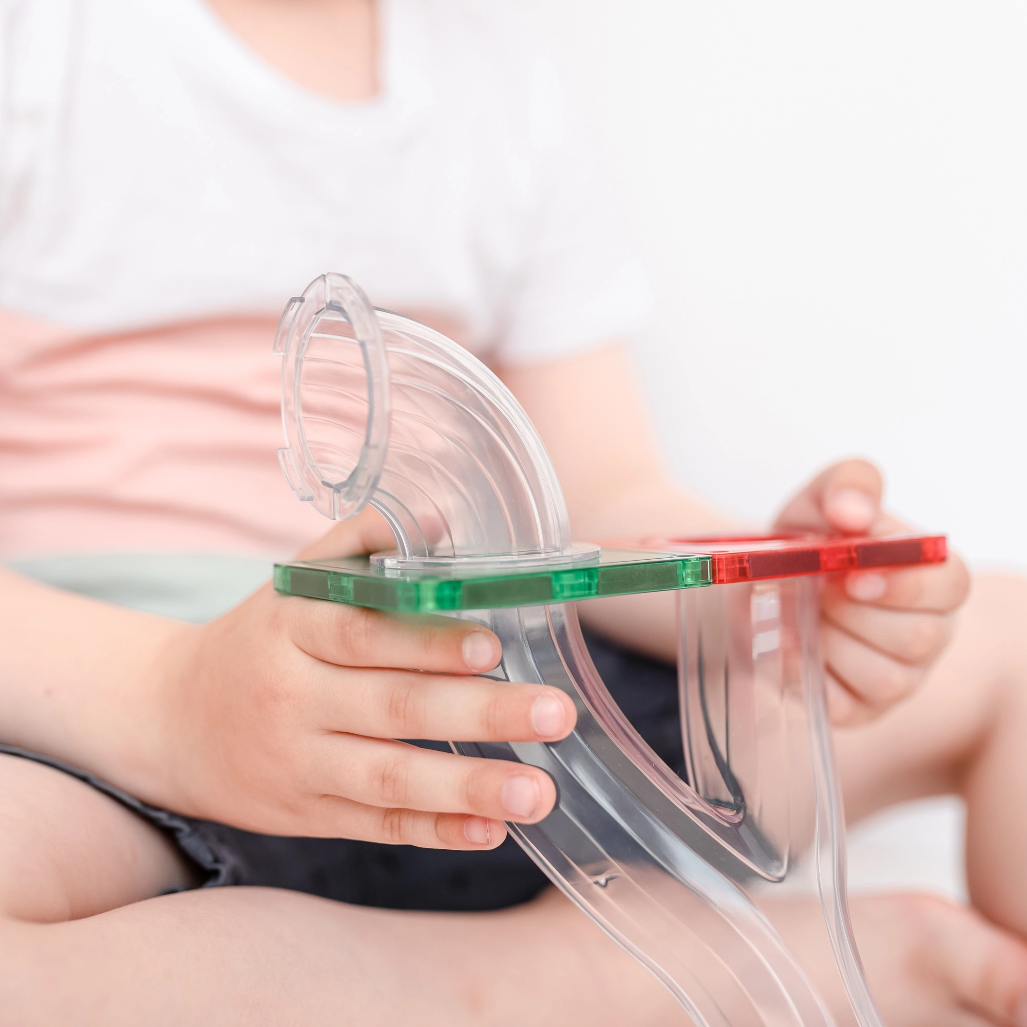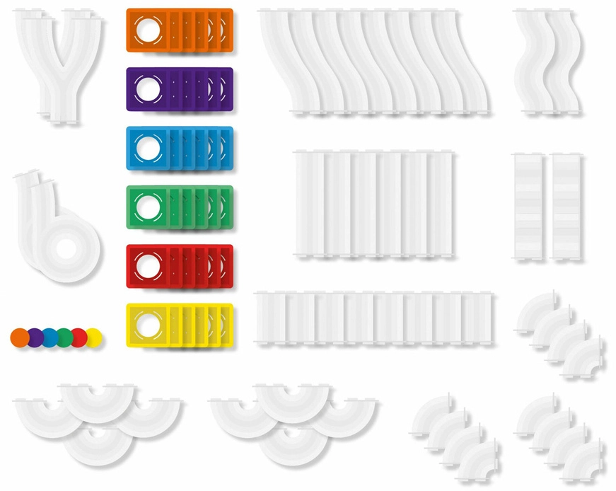 Skaidrūs vamzdeliai, posūkiai, S formos dalys ir Y jungtys leidžia stebėti rutuliukų judėjimą ir tyrinėti greitį, gravitaciją bei priežasties–pasekmės ryšį skirtingose konstrukcijose.
