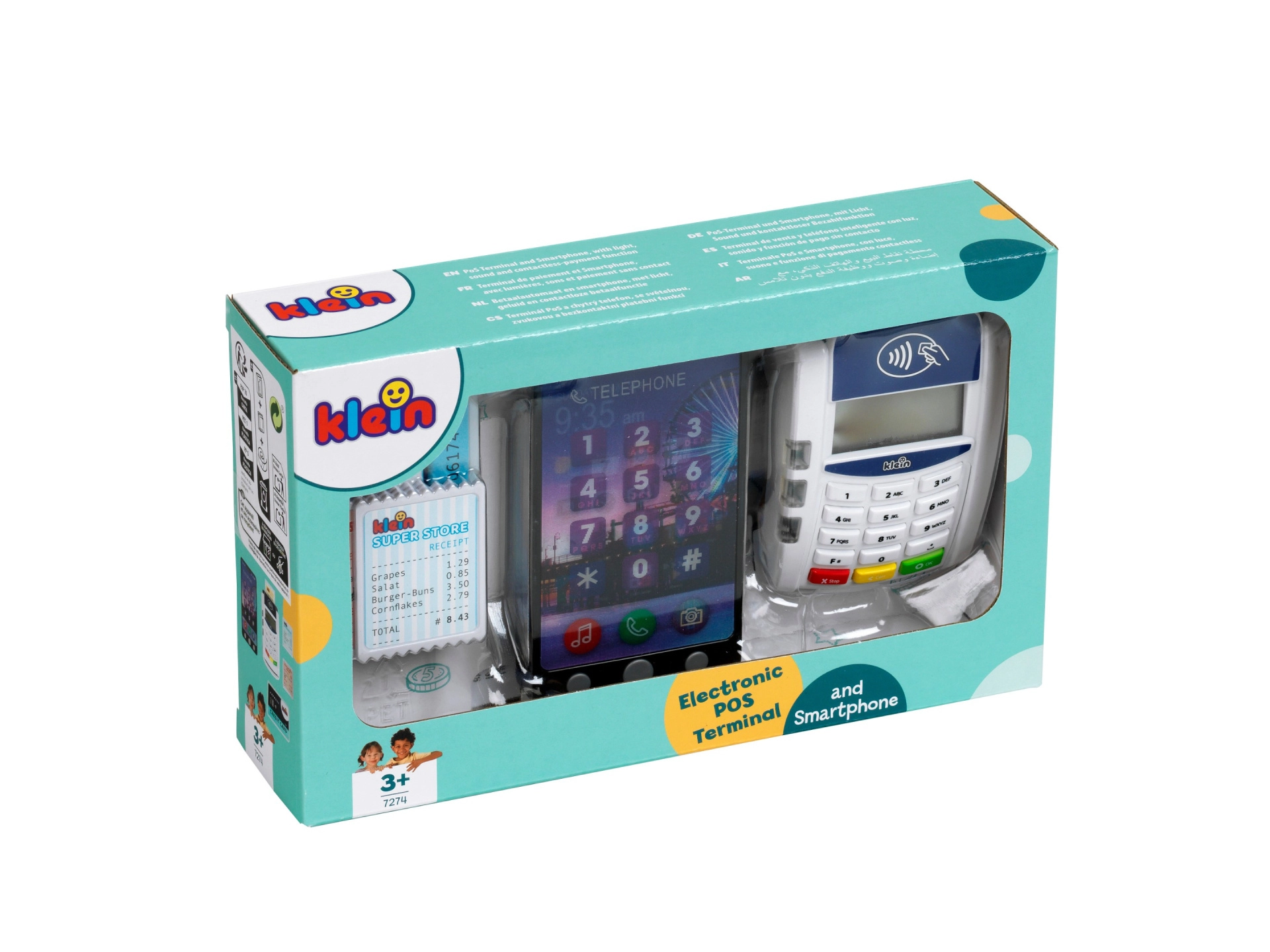 Interaktyvus vaikų POS mokėjimo terminalas iš KLEIN suteikia realistišką prekybos žaidimą. Siūlo bekontakčius mokėjimus naudojant kortelę ir telefoną, žavi šviesos ir garso efektais ir padeda vaikams suprasti pirkimo principus ir pinigų vertę. Rinkinyje yra išmanusis telefonas su holografiniu ekranu ir garso mygtukais.