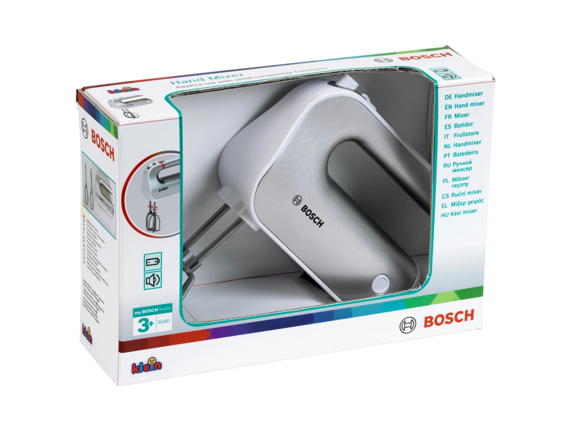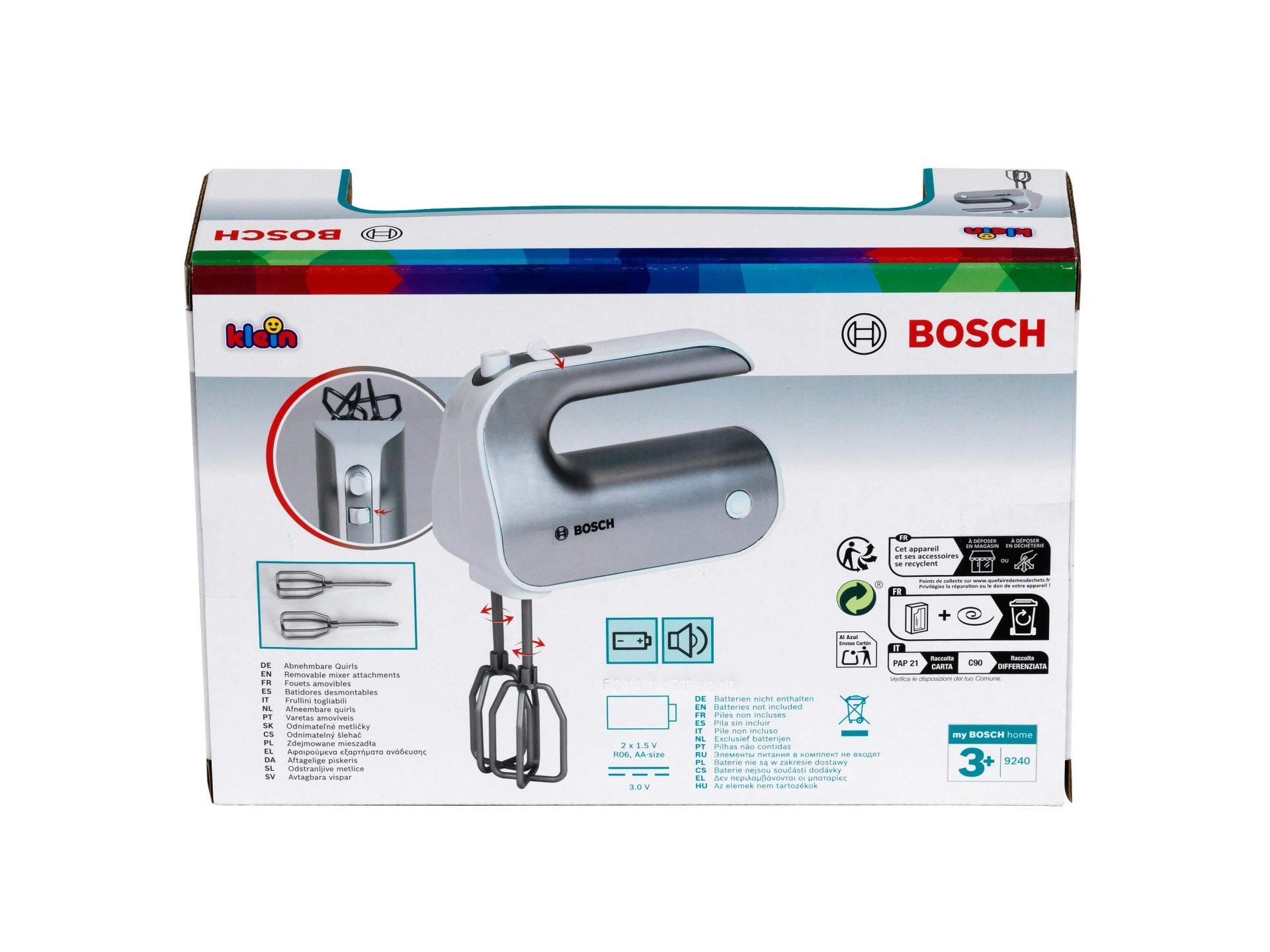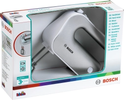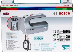 Suteikite vaikams pramogą lyg tikroje virtuvėje. Licencijuotas BOSCH maišytuvas sidabrinės spalvos ištikimai atkartoja tikrą prietaisą: paspaudus mygtuką plaktuvai sukasi, o stumdomas perjungiklis imituoja greičio nustatymą. Dėl nuimamų antgalių vaikai įgis ir tvarkos palaikymo įgūdžių.