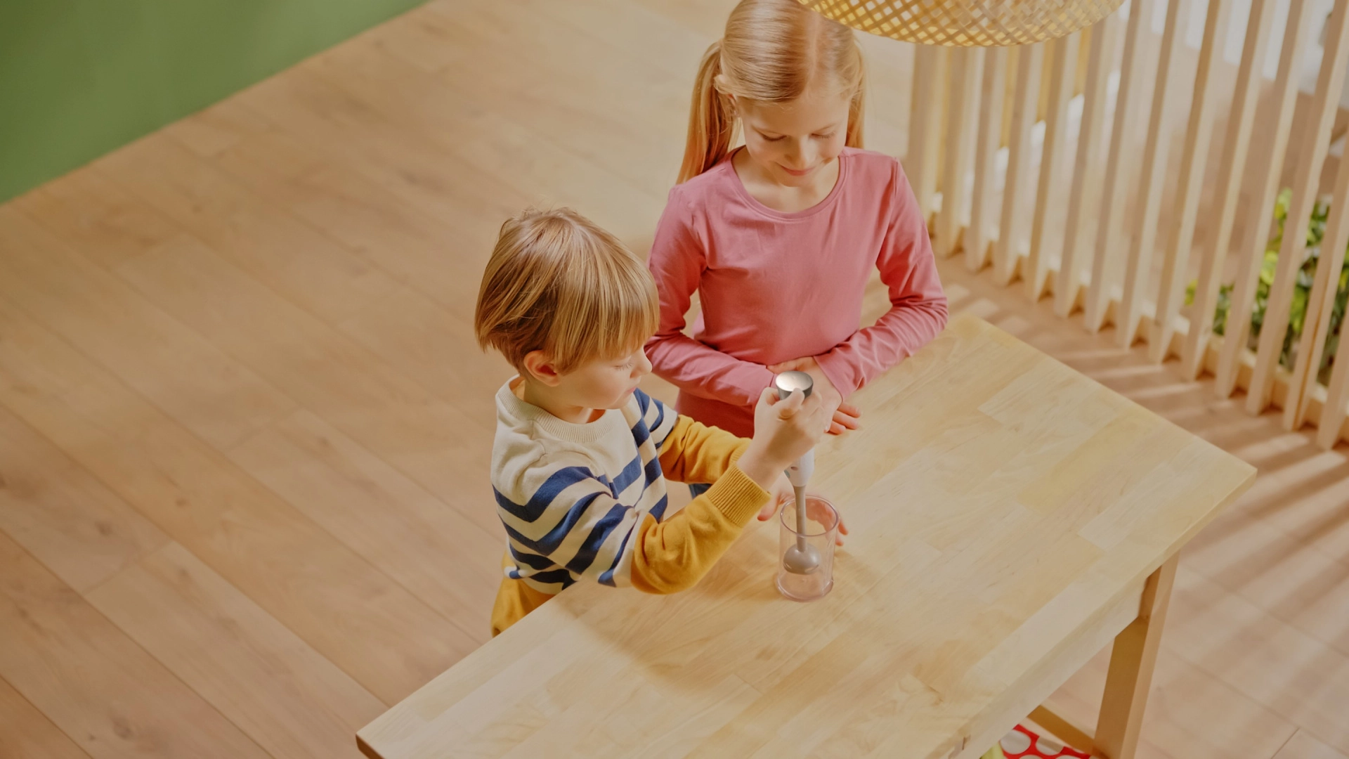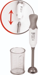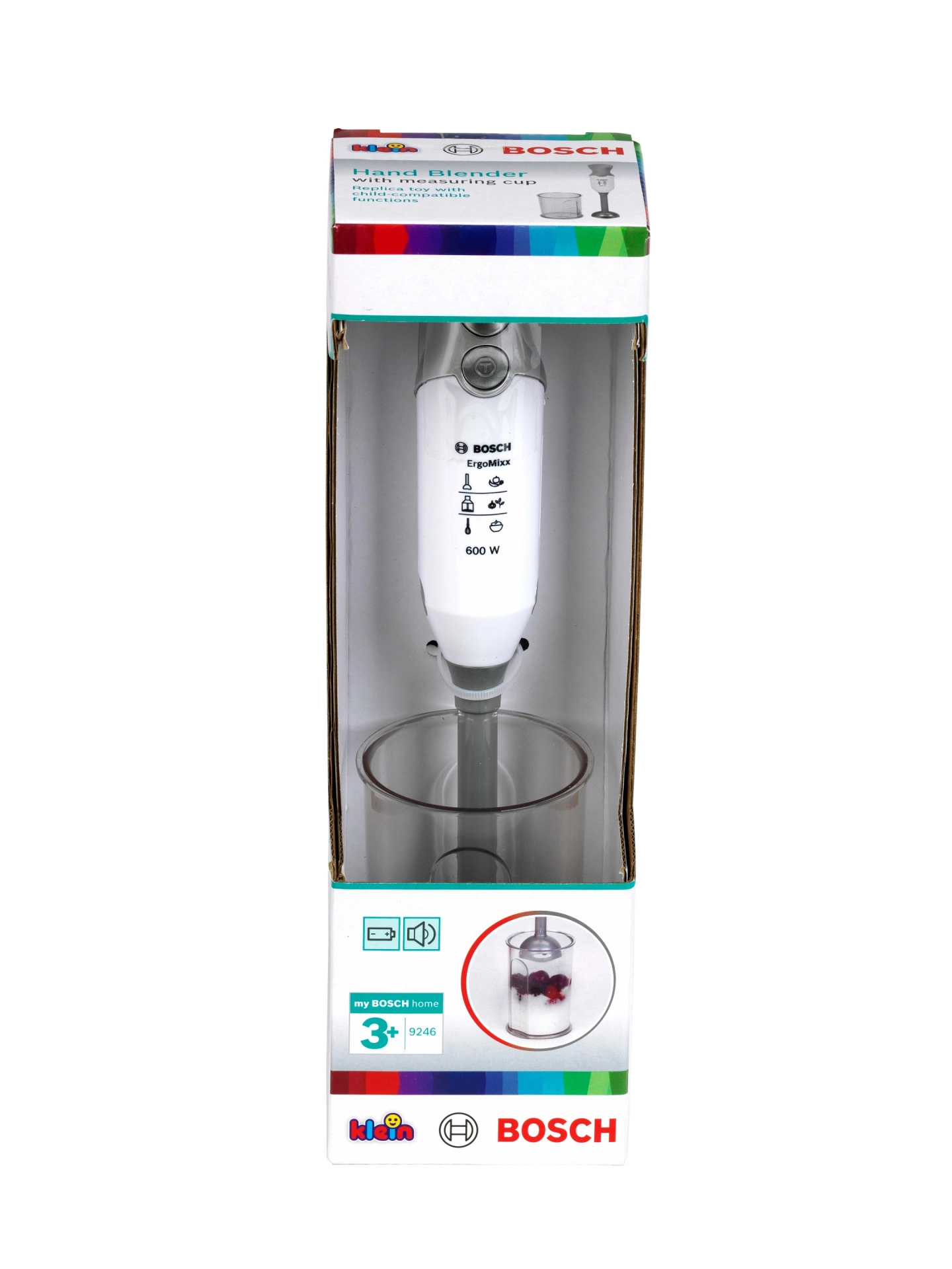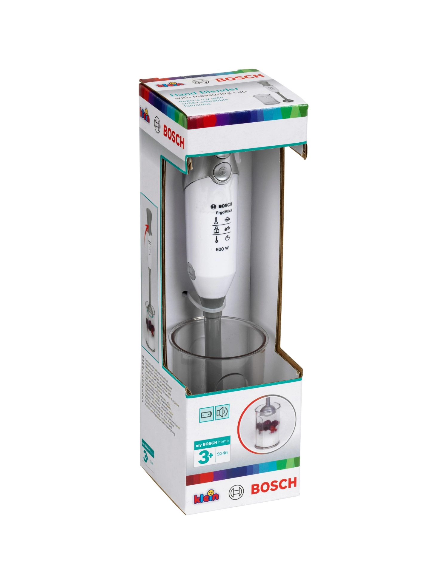 Šis tikroviškas rankinio panardinamiojo maišytuvo modelis iš licencijuotos BOSCH Mini serijos pagamintas iš kokybiško, saugaus plastiko stilingos sidabrinės spalvos. Dėl sukančio antgalio paspaudus mygtuką ir nuimamo maišymo antgalio žaidimas atrodo tikras, o vaikai gali „maišyti“ kokteilius, sriubas ir padažus lyg tikroje virtuvėje.