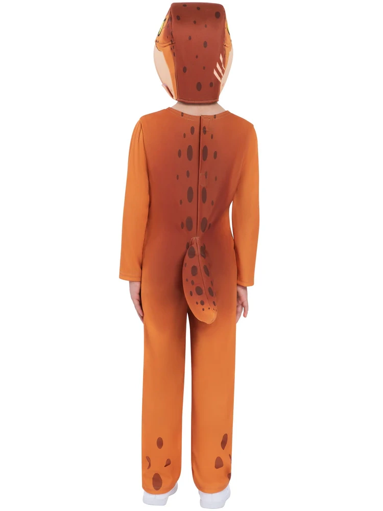 Mielas ir patogus vaikiškas kostiumas JURASSIC WORLD T‑Rex mažiesiems dinozaurų gerbėjams, 3–4 metų amžiaus. Vienos dalies kombinezonas su kapišonu dinozauro formos, pritvirtinta uodega ir dėmių raštu užtikrina lengvą apsivilkimą ir maksimalų komfortą per karnavalą, Heloviną ar kasdieniams persirengimams.