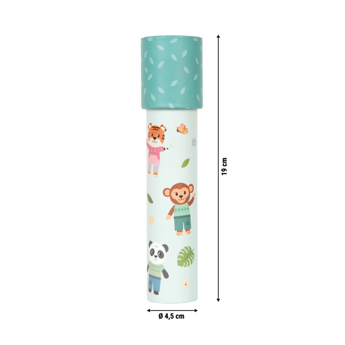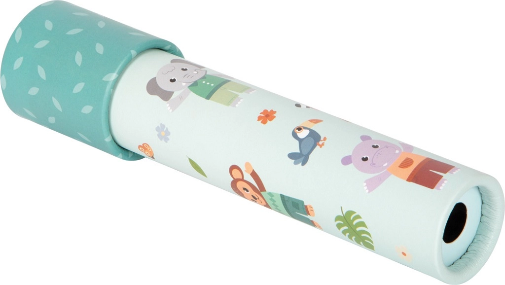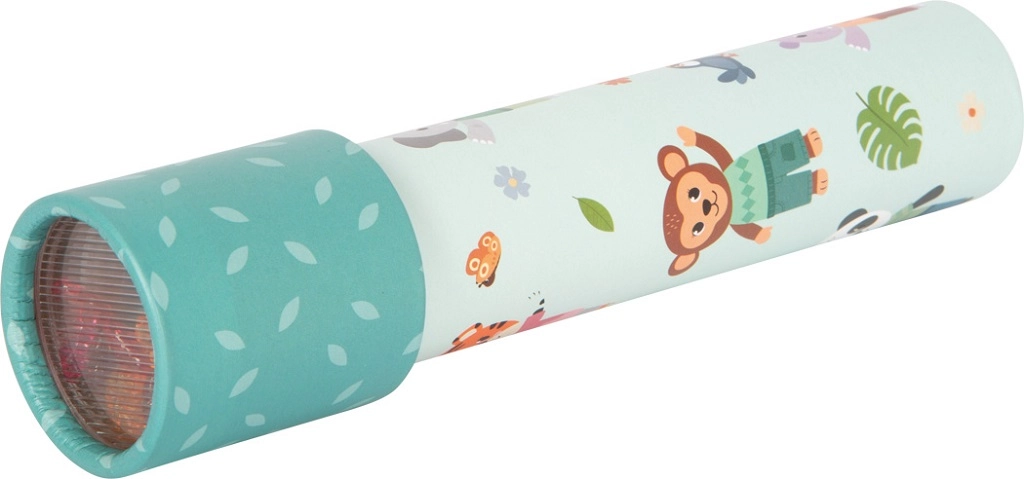Kaledoskopas „Džiunglių draugai“ SMALL FOOT pradžiugins vaikus nuo 3 metų žaismingu dizainu su tigro, dramblio, beždžionės, zebros, pandos ir begemoto motyvais. Kiekvienas pasukimas atskleidžia vis naujus geometrinius raštus, kurie skatina fantaziją ir moko atpažinti spalvas bei formas.