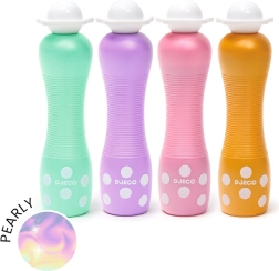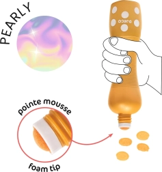 DJ E C O putų flomasteriai su perlamutriniu blizgesiu sukurti mažiesiems menininkams. Dėl plačios putų galiuko spalva dengiasi tolygiai, nebėga ir lengvai nusiplauna nuo odos bei daugumos audinių. Švelnus perlamutrinis efektas suteikia kiekvienam piešiniui magiško spindesio.