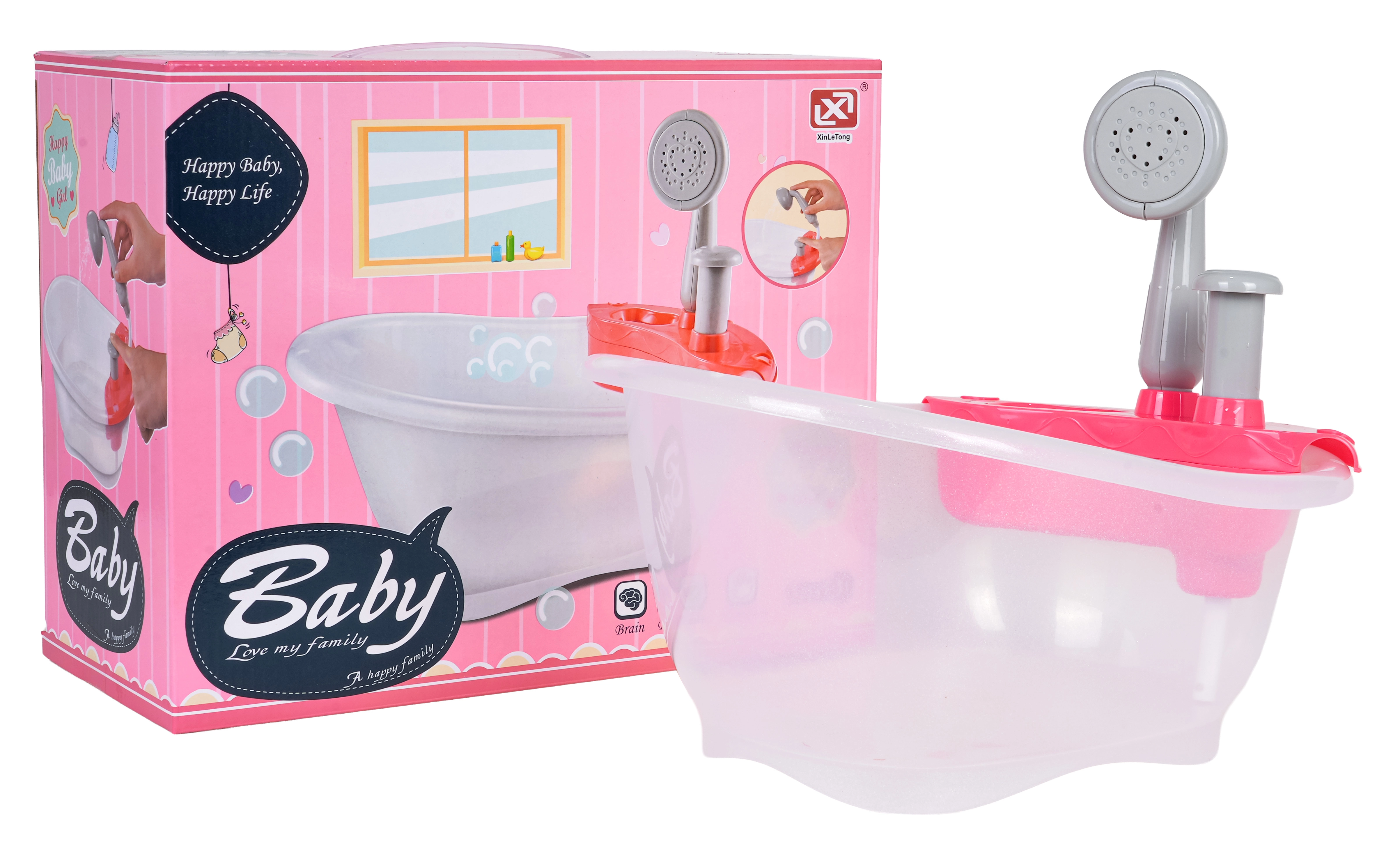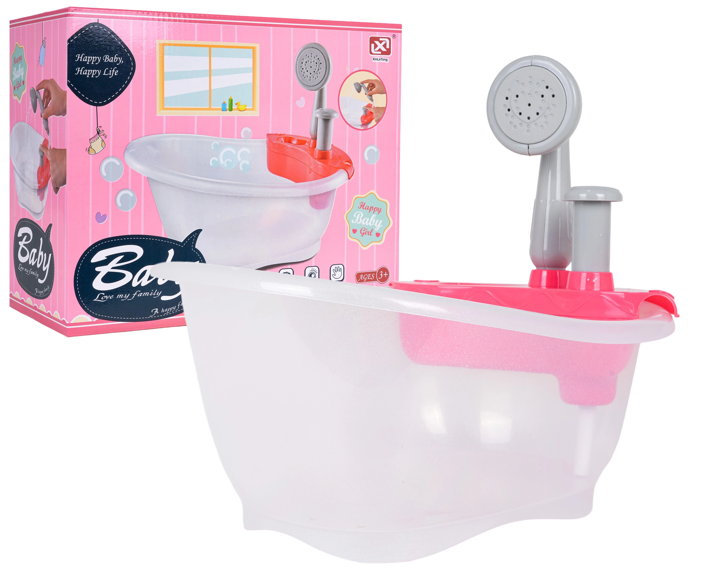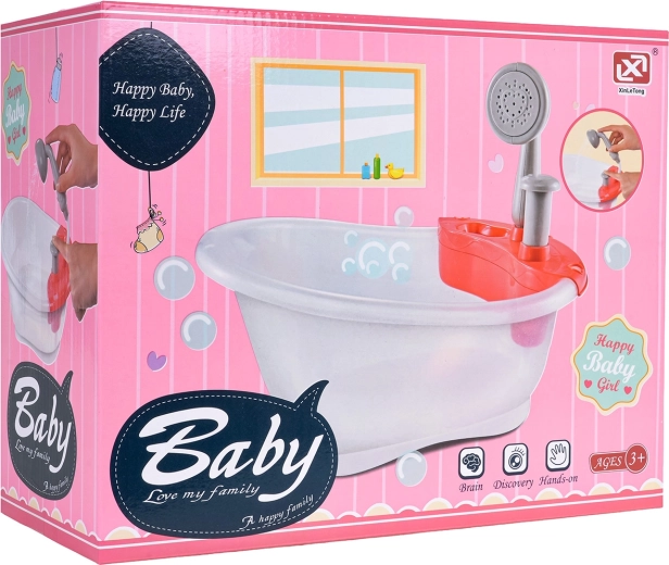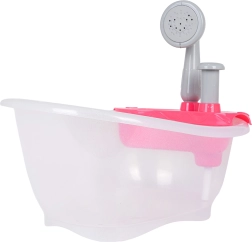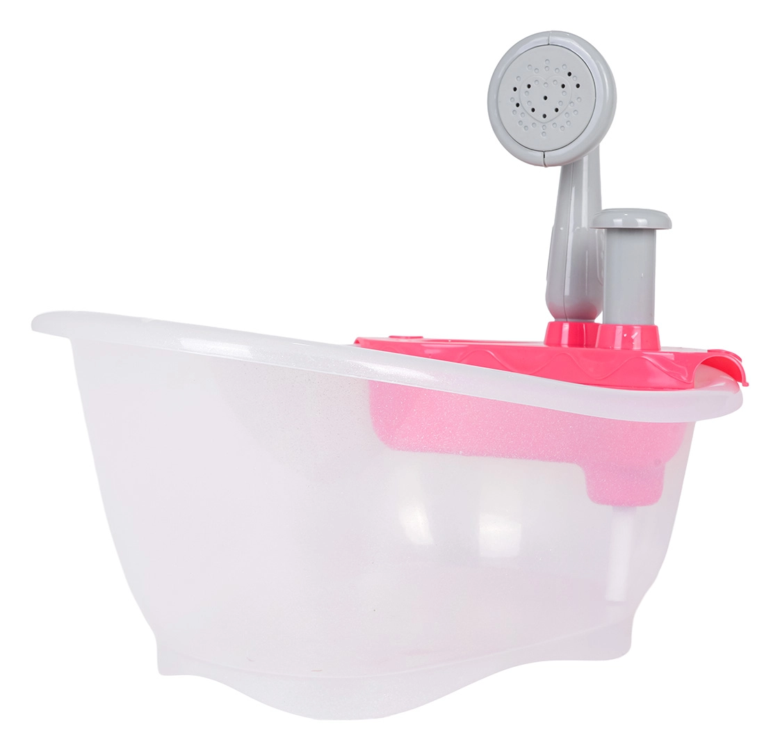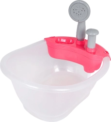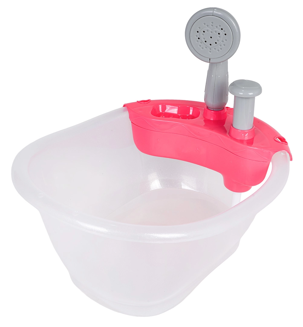 Miela lėlyčių vonelė su dušu pradžiugins vaikus nuo 3 metų. Pripildžius vandeniu ir paspaudus pompą, iš dušo tikrai bėga vanduo. Rinkinys pagamintas iš saugių ir kokybiškų medžiagų, idealiai tinka kaip dovana mažiesiems globėjams.