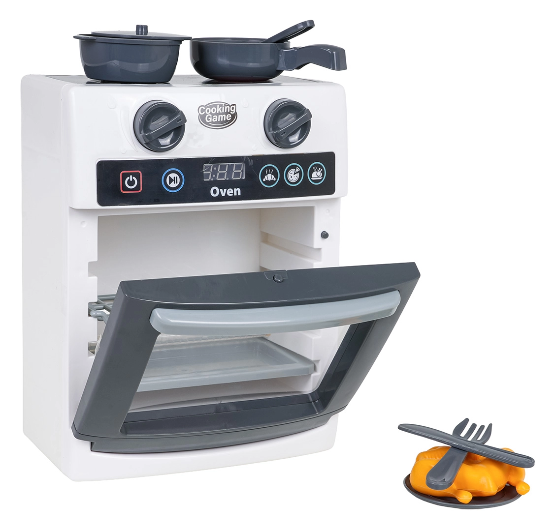 Ši vaikiška orkaitė ištikimai atkuria tikrą prietaisą – turi permatomas dureles, judančius valdymo ratukus ir panelę su laikmačiu. Kepant vidus įsižiebia, girdimi realistiški durelių atidarymo/uždarymo, kepimo ir programos pabaigos garsai. Žaidimas „virtuvė“ įgauna naują kūrybiškumo ir fantazijos dimensiją.