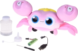 Gražus rožinis burbulų krabas kuria daugybę vaivorykštinių burbuliukų ir kartu važiuoja ratukais, šviečia ir pradžiugins kiekvieną vaiką. Pakuotėje rasite burbulų tirpalą, įkraunamą 3,7 V bateriją su USB įkrovimu ir viską, ko reikia akimirksniu pramogai. Puikiai tinka sodui, šventėms ir kasdieniams žaidimų popietėms.
