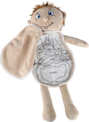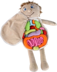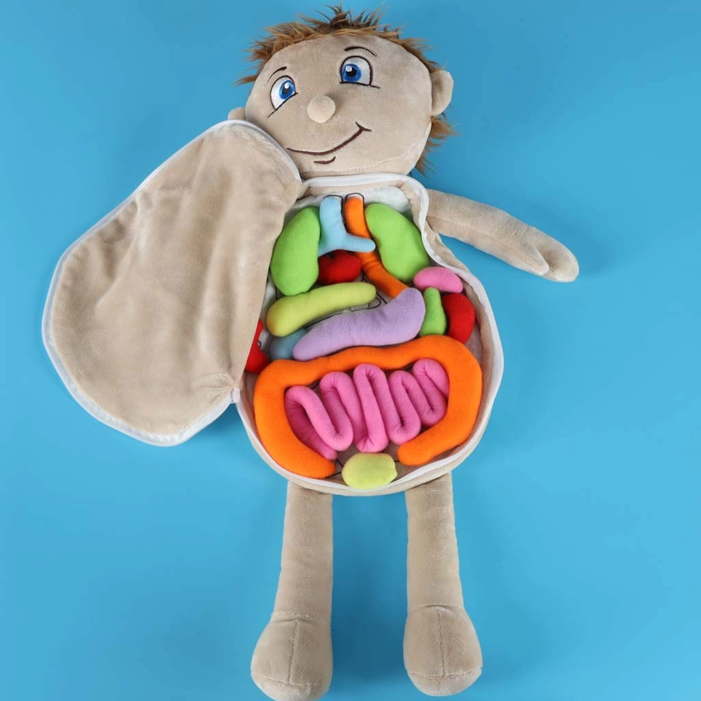 Ši edukacinė pliušinė lėlė su atsisegančiu pilvuku padeda vaikams žaismingai ir vaizdžiai suprasti žmogaus anatomijos pagrindus. Pilvuką lengva atidaryti naudojant saugų užtrauktuką, o viduje atsiveria spalvoti, minkšti organai, pritaisyti lipniosiomis juostelėmis, kad būtų paprasta juos išimti ir vėl įdėti atgal. Lėlė pagaminta iš malonaus poliesterio, papildyta lengvai nuimamu drabužėliu, surišamu nugaroje.