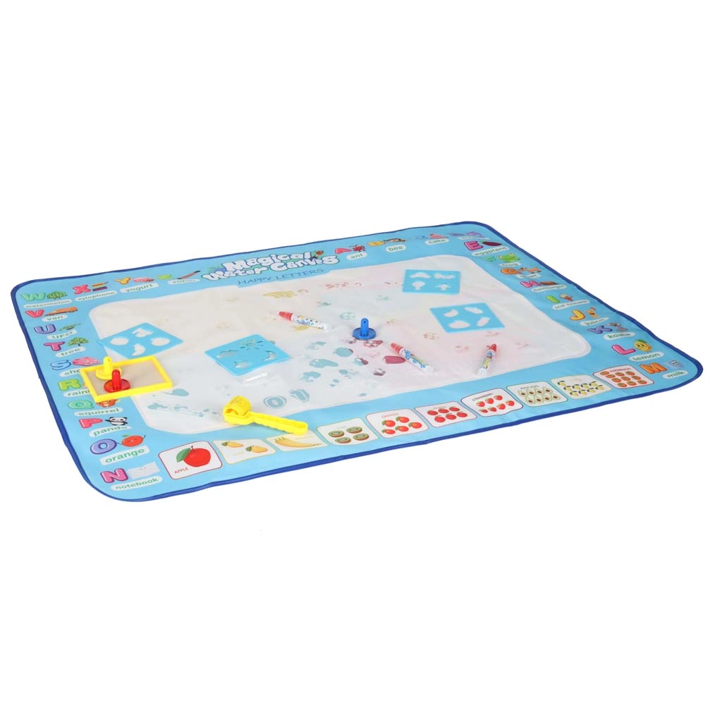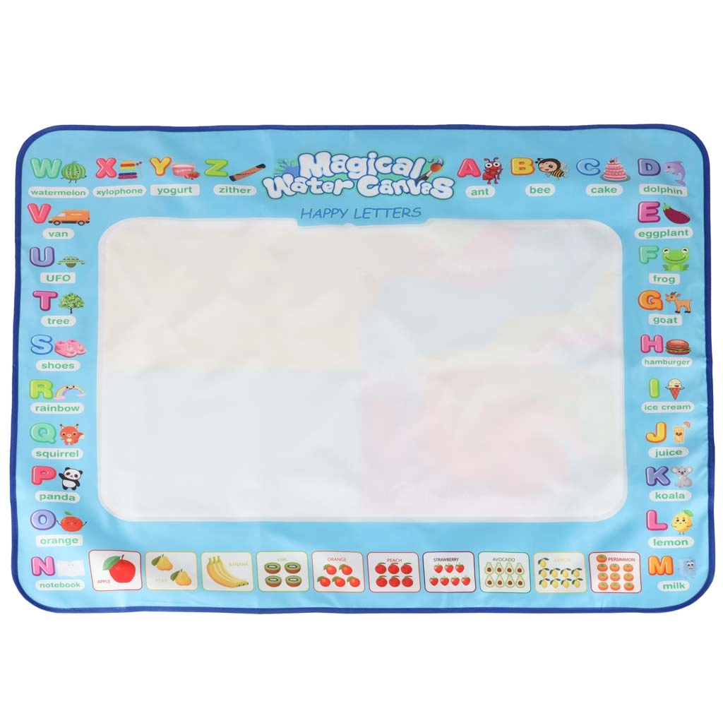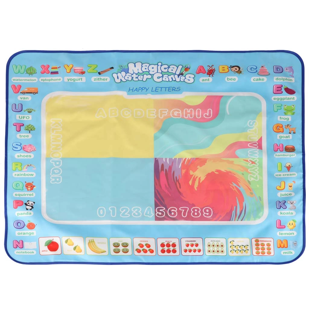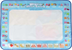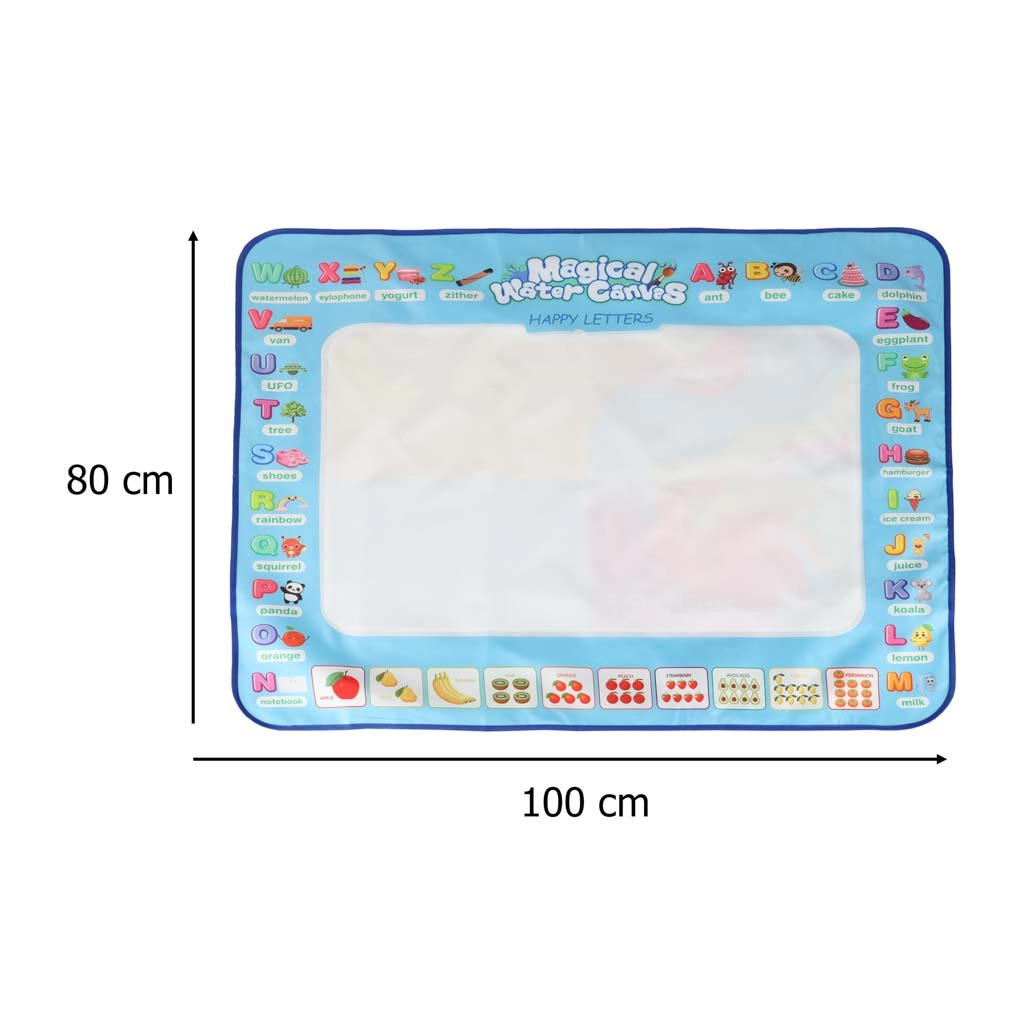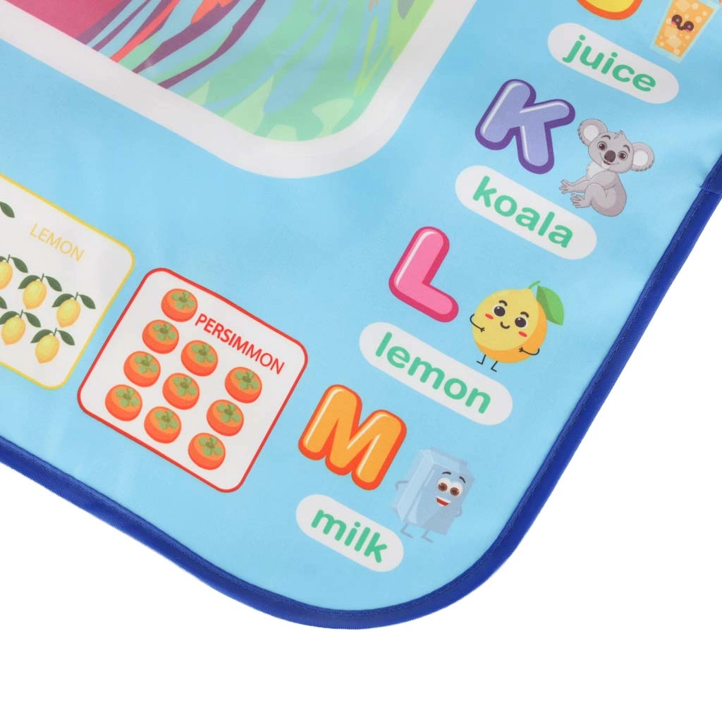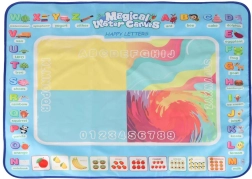 Didelis vandens piešimo kilimėlis suteikia vaikams pramogą be netvarkos. Piešiniai pasirodo kontaktavus su vandeniu ir maždaug po 30 minučių savaime išnyksta. Spalvingas kraštas su raidėmis ir paveikslėliais skatina abėcėlės mokymąsi ir vaizduotę.