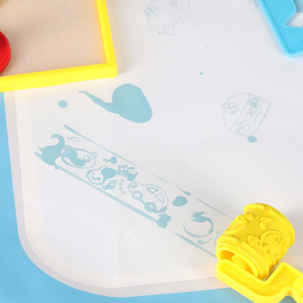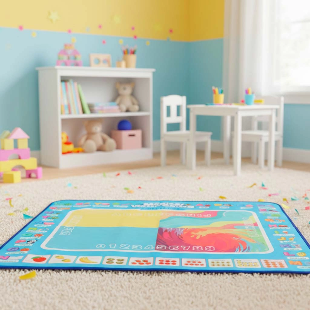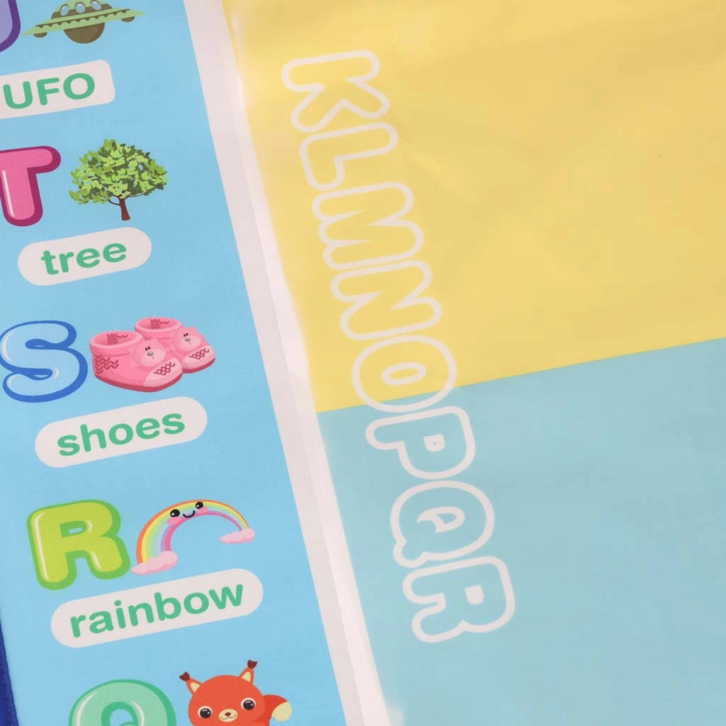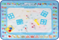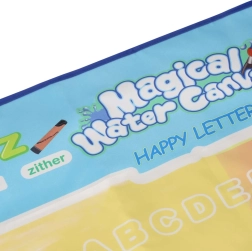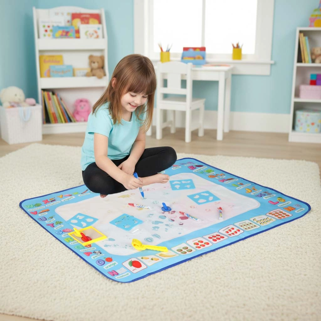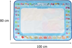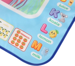 Didelis vandens piešimo kilimėlis suteikia vaikams pramogą be netvarkos. Piešiniai pasirodo kontaktavus su vandeniu ir maždaug po 30 minučių savaime išnyksta. Spalvingas kraštas su raidėmis ir paveikslėliais skatina abėcėlės mokymąsi ir vaizduotę.