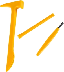 Lengvi plastikiniai įrankiai puikiai tinka vaikų rankoms ir leidžia patogiai bei saugiai skaldyti ir valyti radinius.